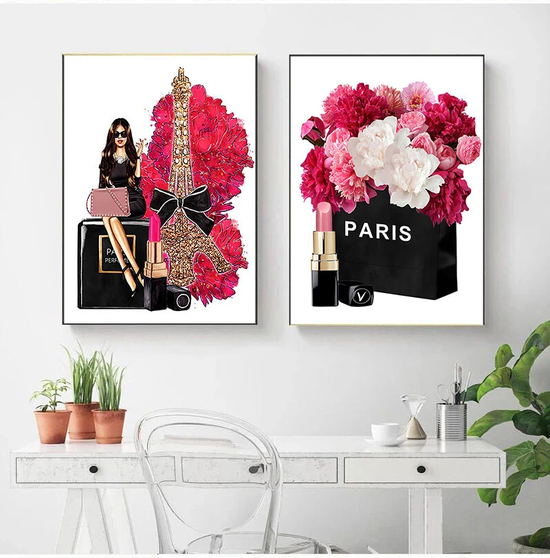 Модная Настенная картина в скандинавском стиле с изображением парфюма Парижской башни цветка губной помады