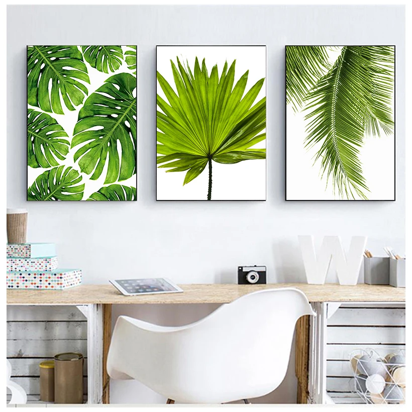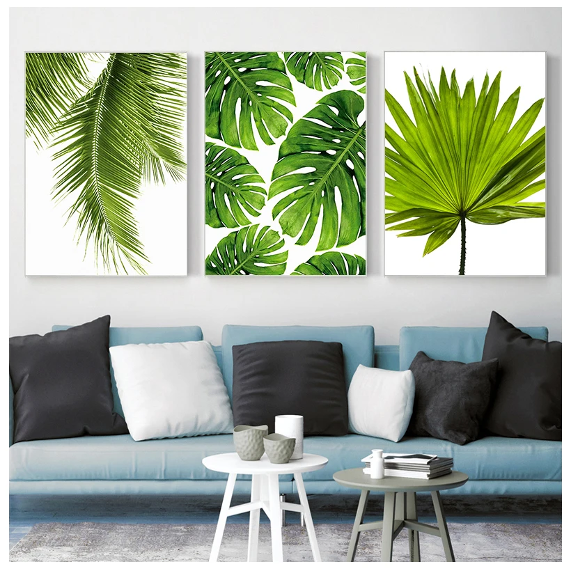 Картина на холсте с изображением тропических листьев банана, свежих пальмовых листьев, плакат нордическое зеленое растение, Настенная картина для украшения комнаты