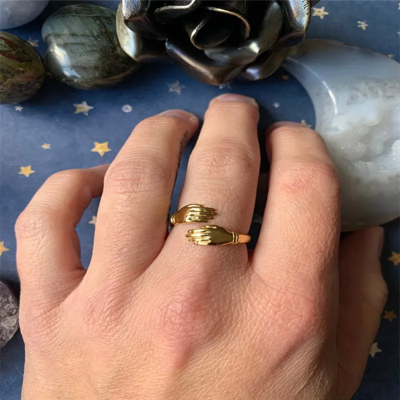 Теплые обнимающие изящные кольца в форме руки, двойные кольца обеща...