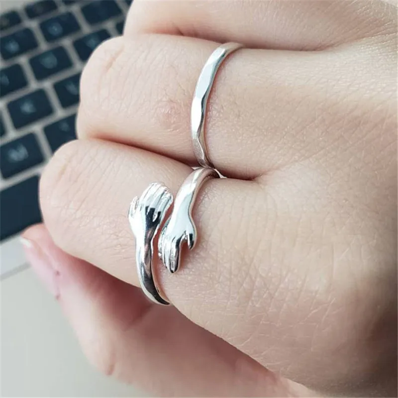 Винтаж пара Романтический ручной работы с любовью кольца «объятия» Творческий Регулируемый любовь навсегда открытый палец кольцо на руку для Для женщин, ювелирное изделие, подарок