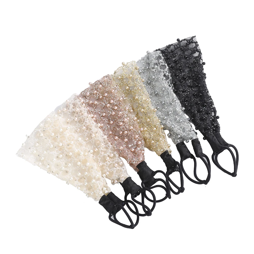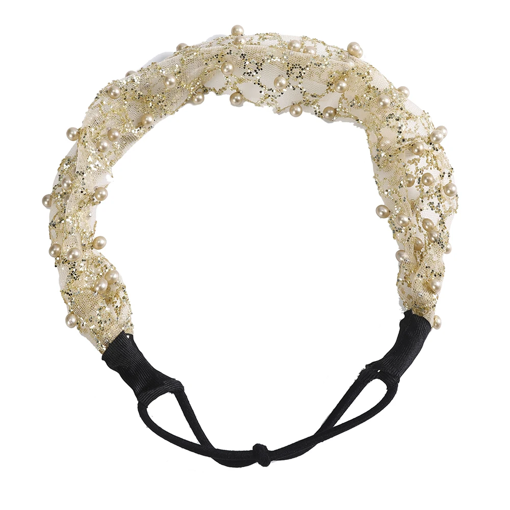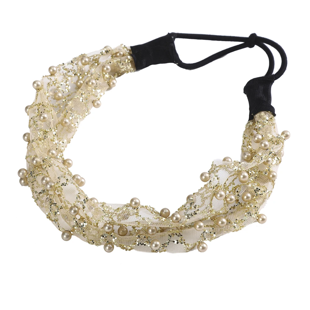 Женская повязка на голову Levao, кружевная плетеная повязка на голову с жемчугом, блестящая эластичная повязка на голову с блестками, бандана повязка для волос