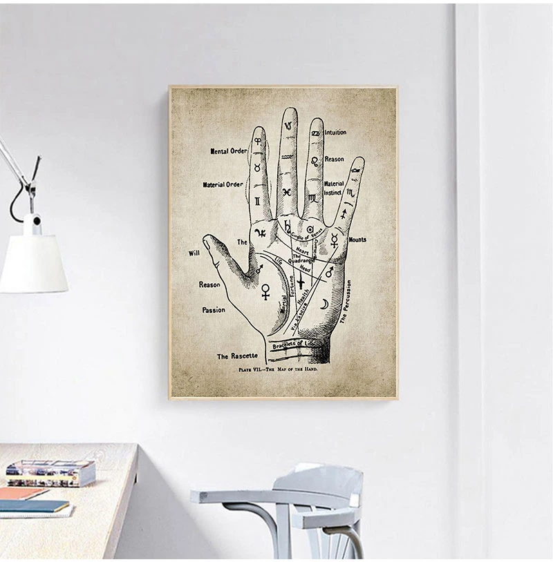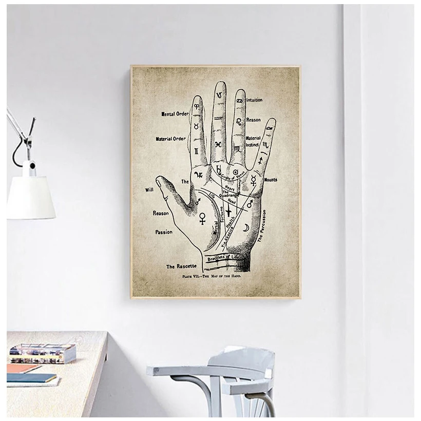 Palmistry ручной ВИНТАЖНЫЙ ПЛАКАТ принты чироманность удача Линг ладони чтение на холсте искусство живопись настенные картины домашнее Искусство Декор