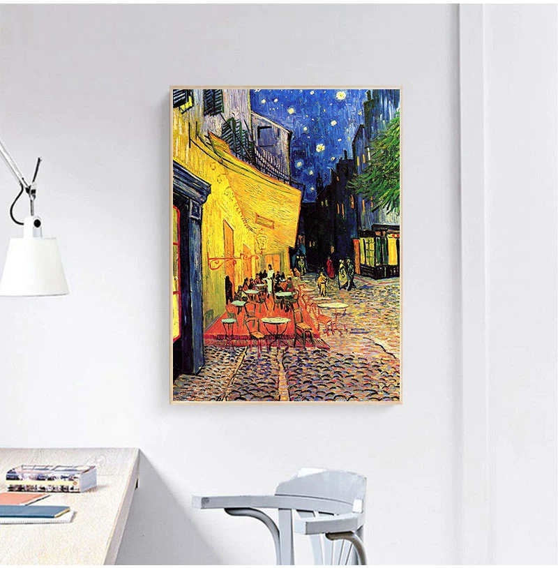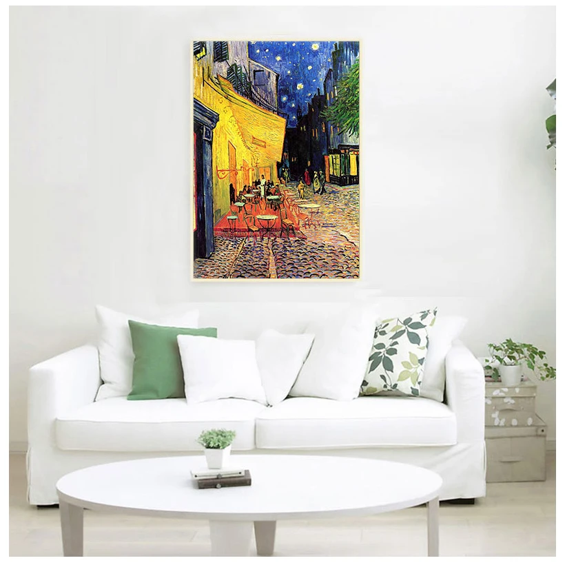 Картина маслом Ван Гога с принтом плакат для кафе террасы в ночное время Картина на холсте для украшения гостиной