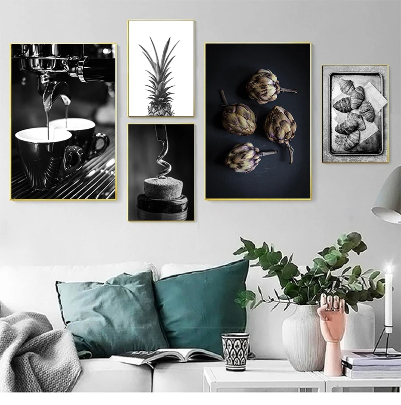 Плакат с бусинами кофе, вина, черный, белый, еда, напитки, кухня, настенный художественный принт, простая Картина на холсте, картина, декор для столовой
