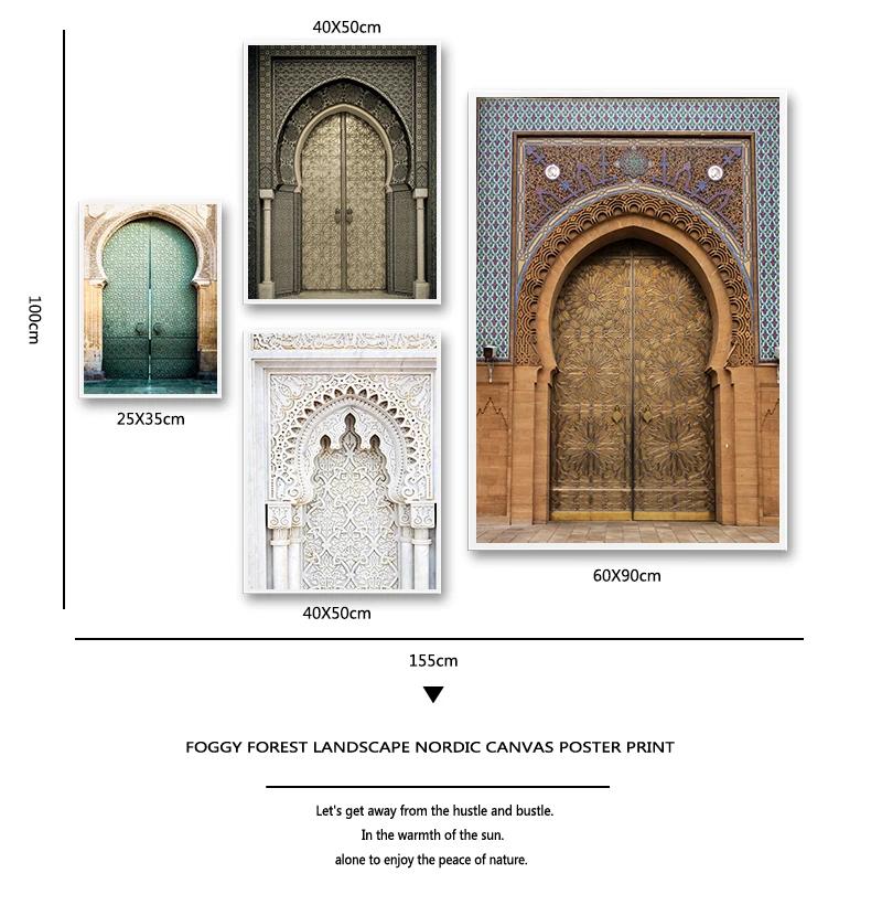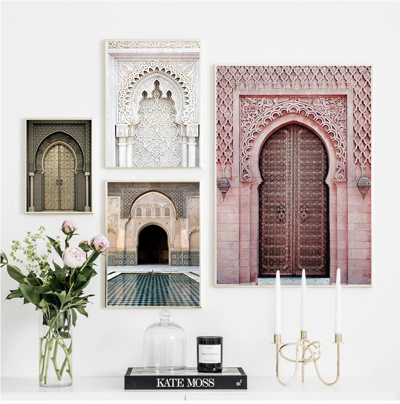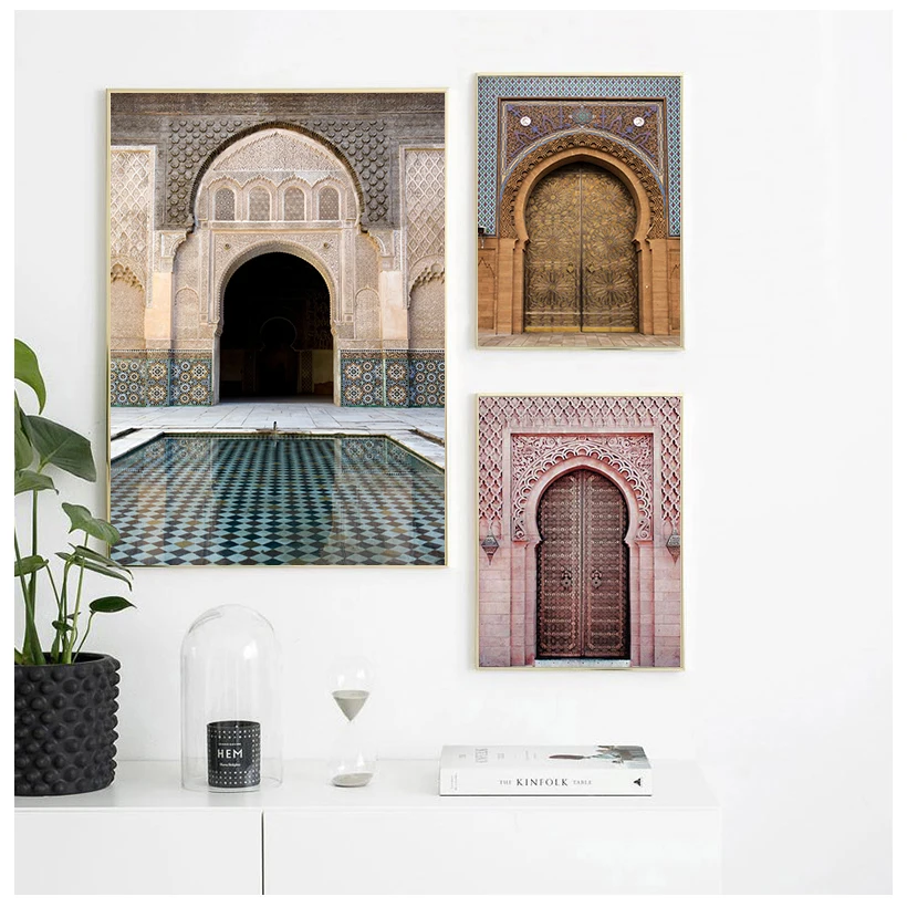 Марокканская АРКА, Картина на холсте со старой дверью, исламское здание, настенный плакат, печать на мечети Хасана II, мусульманское украшение, картина