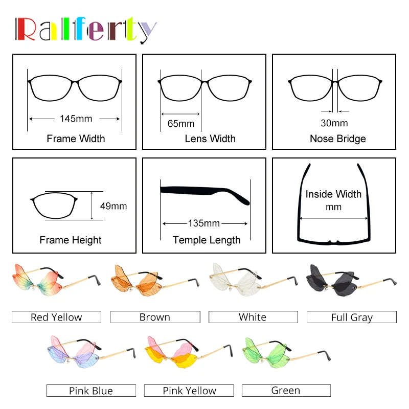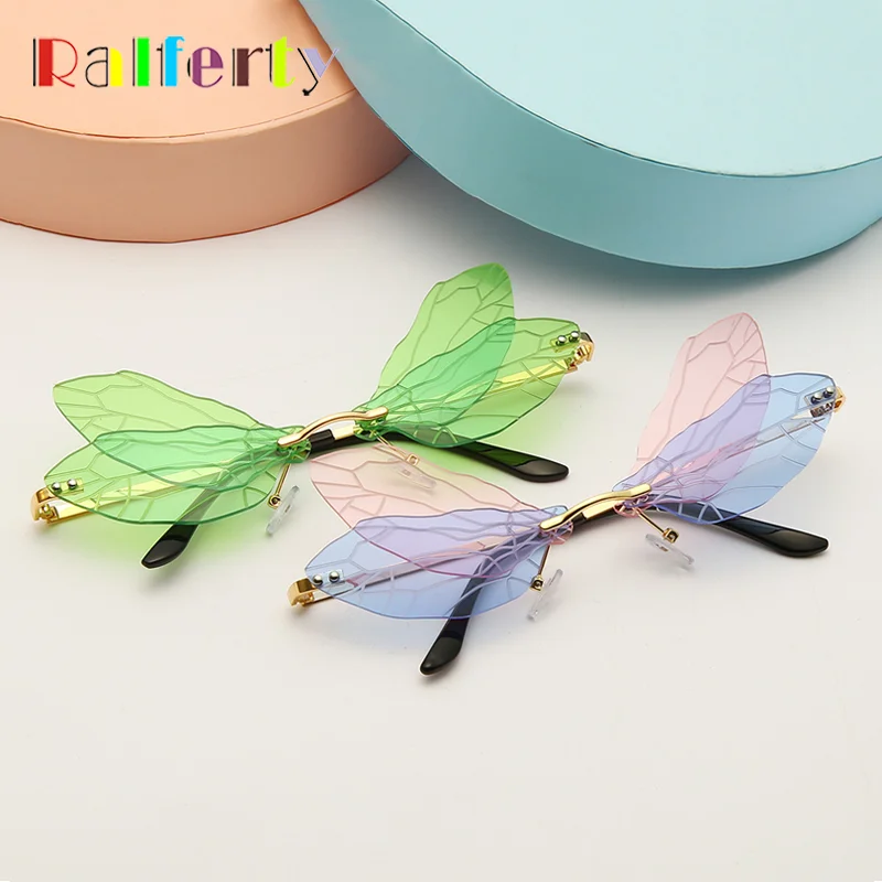 Ralferty 2021 Модные женские солнцезащитные очки без оправы красочные стрекозы стимпанк Солнцезащитные очки с прозрачными линзами oculos de sol feminino