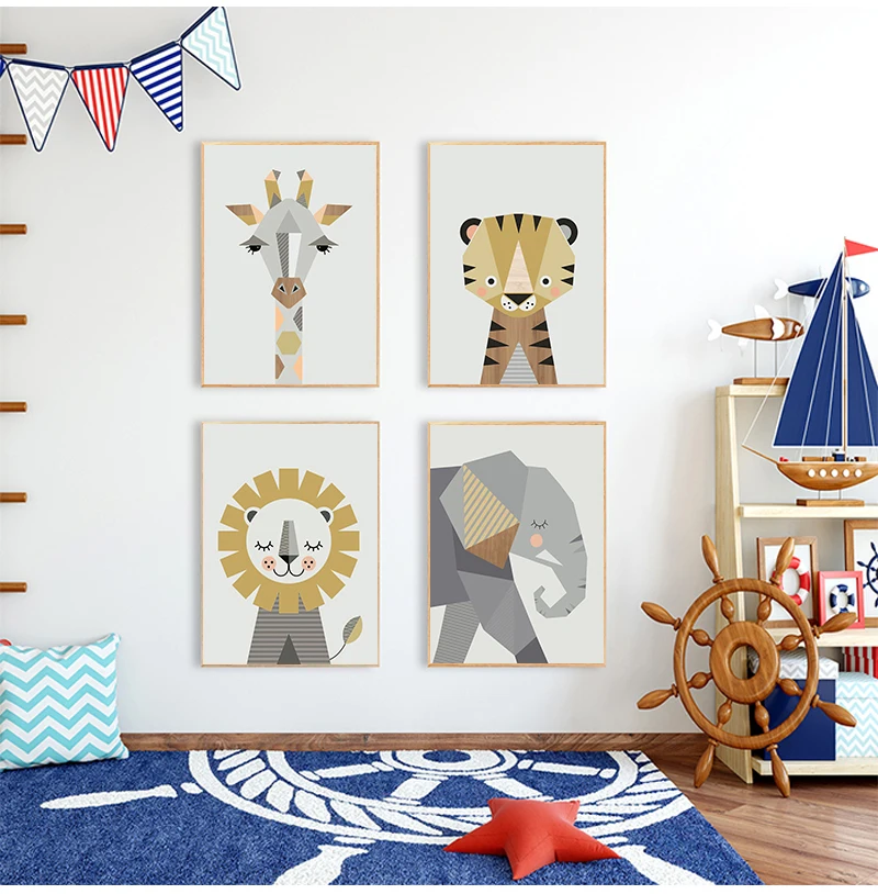 Жираф зебра лев Слон Обезьяна скандинавские плакаты и принты настенная живопись на холсте животные художественные принты настенные картины детская комната
