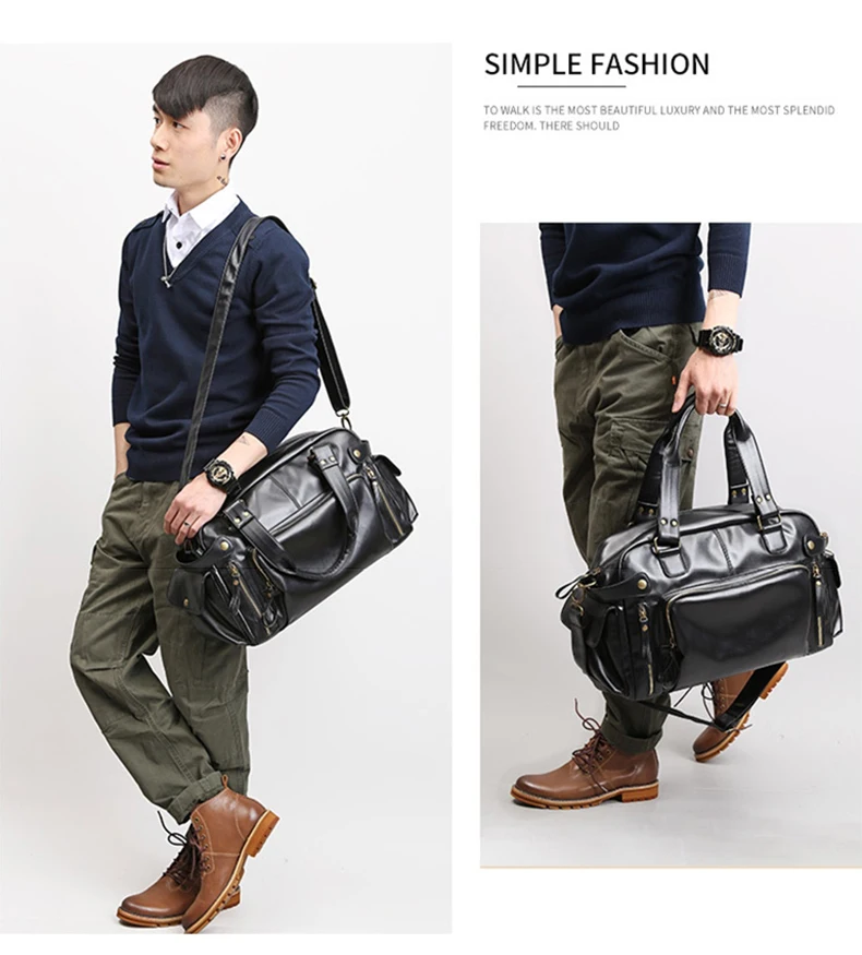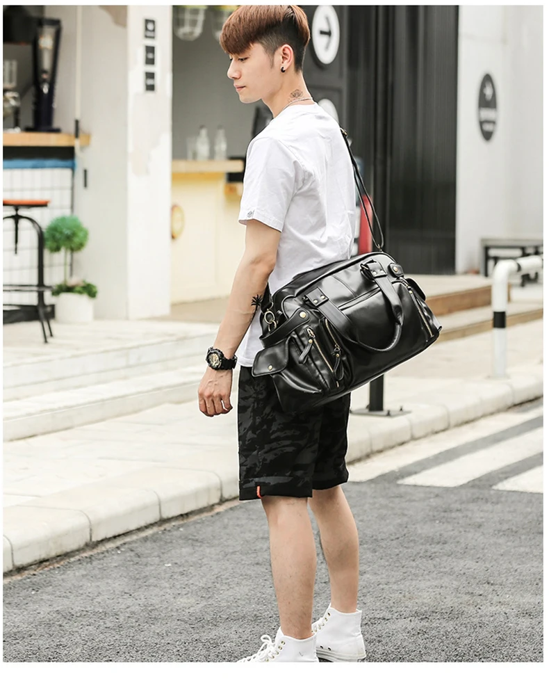 Дорожные сумки для мужчин, Повседневная винтажная сумка на плечо из высококачественной искусственной кожи, чемоданчик черного и коричневого цвета для ноутбука, XA226M