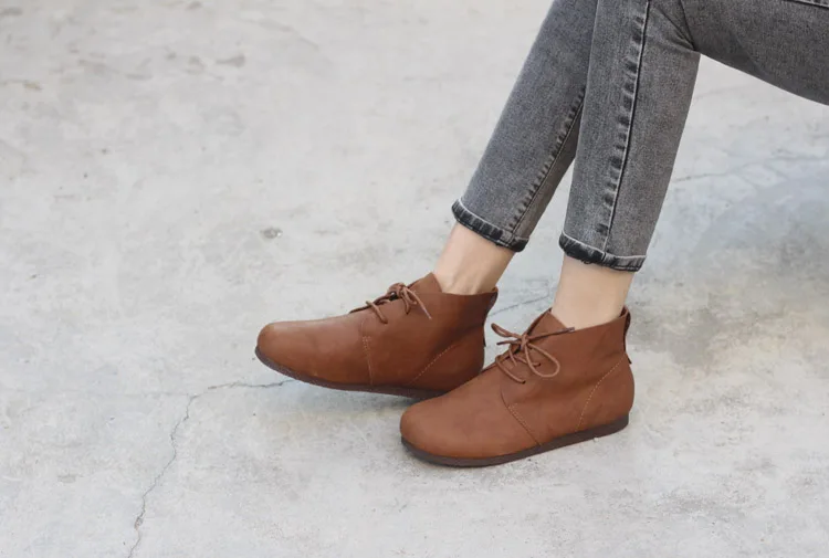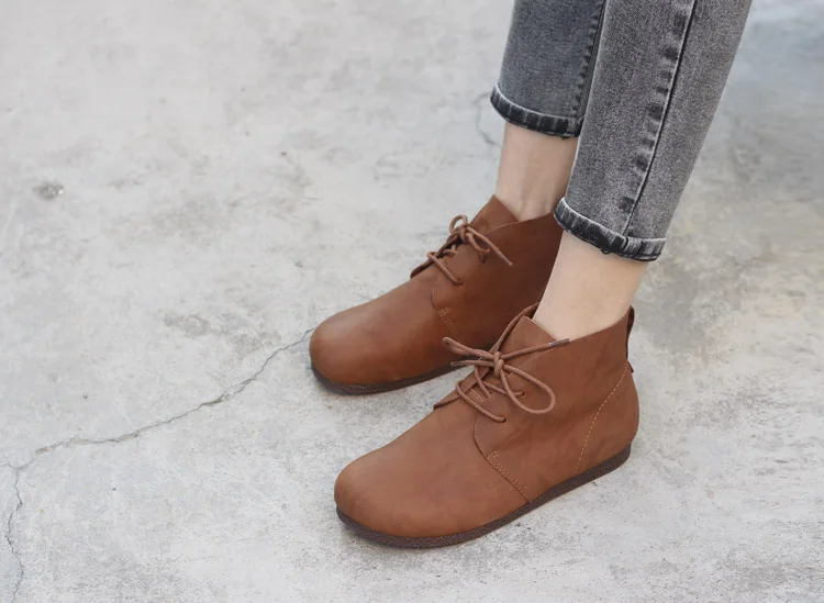 2011 Весенняя женская обувь женские ботильоны; Женские полуботинки с круглым носком, на шнуровке, на плоской подошве, женские ботильоны 100% женские сапоги из натуральной кожи на осень