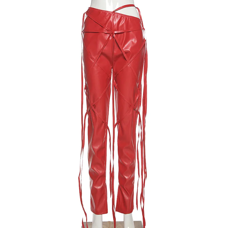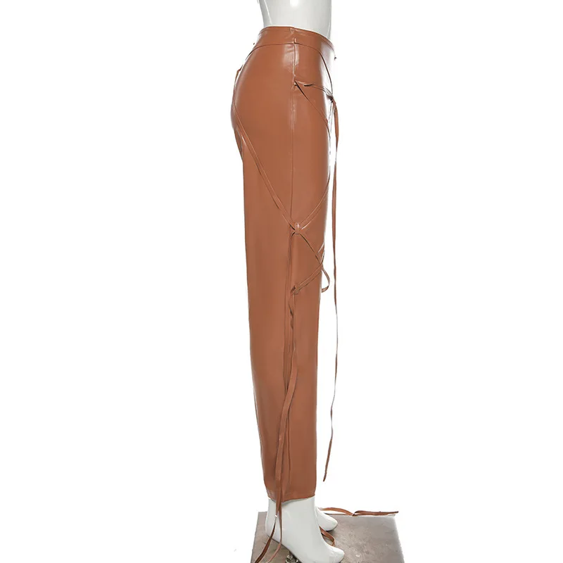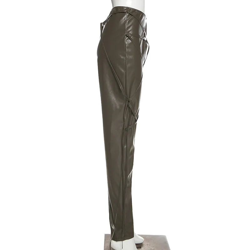 Женские брюки-карандаш из искусственной кожи, с высокой талией, осе...