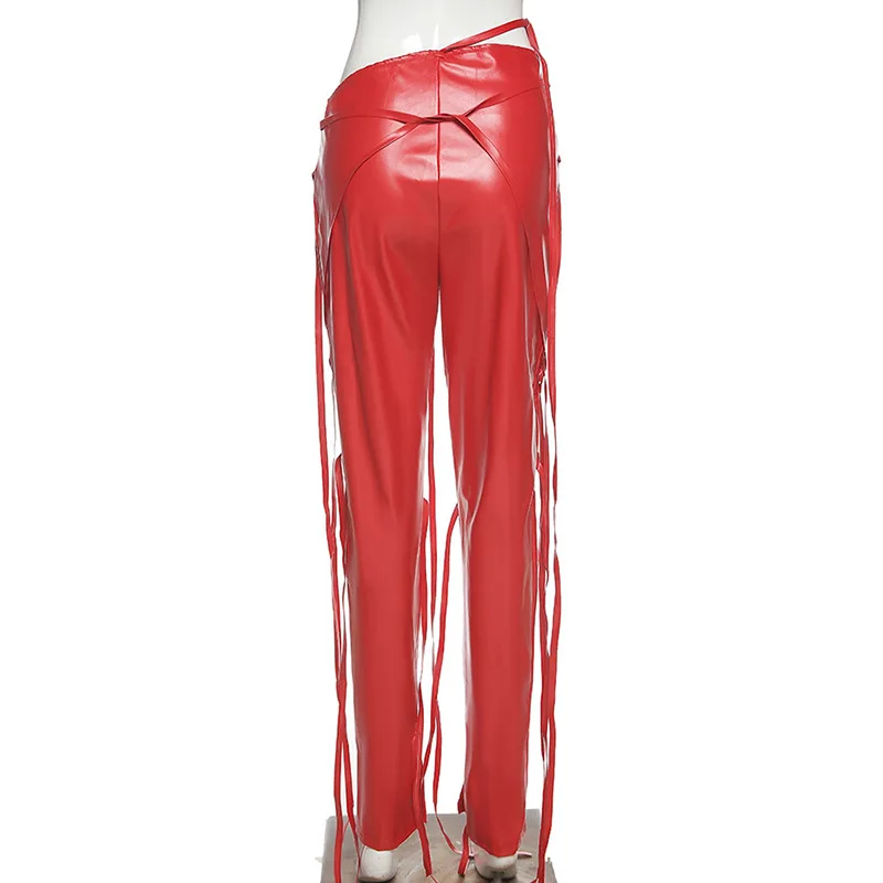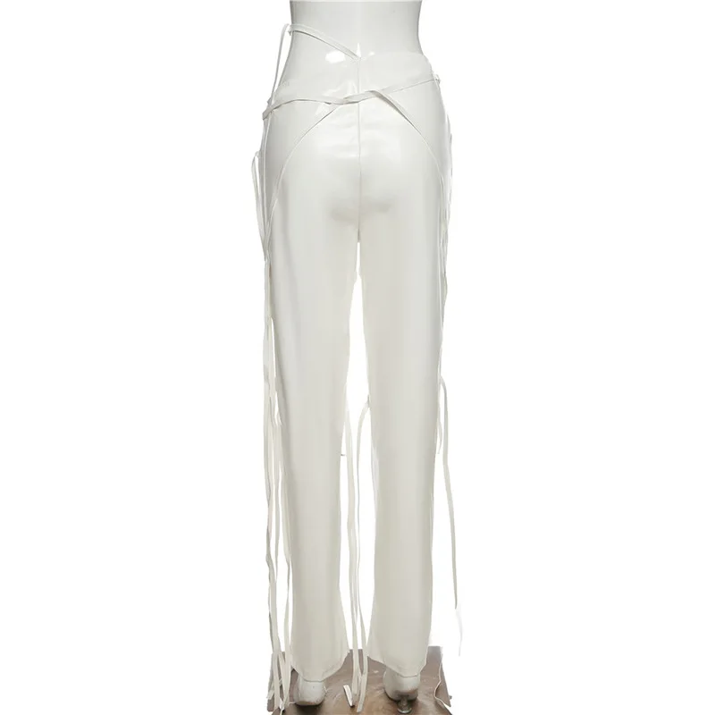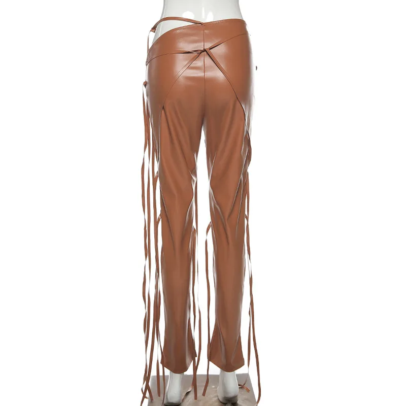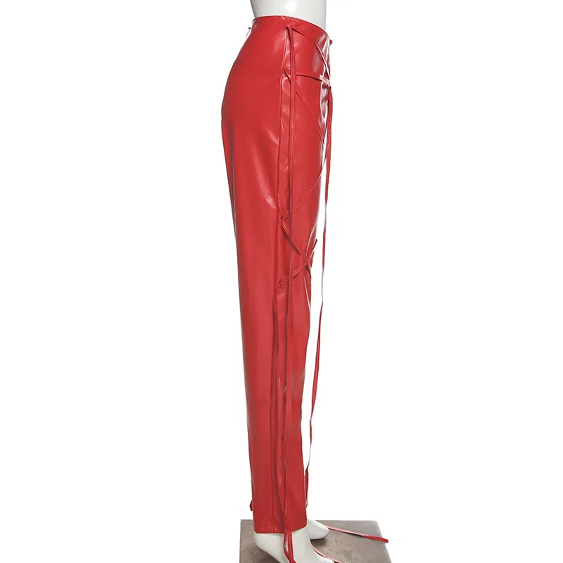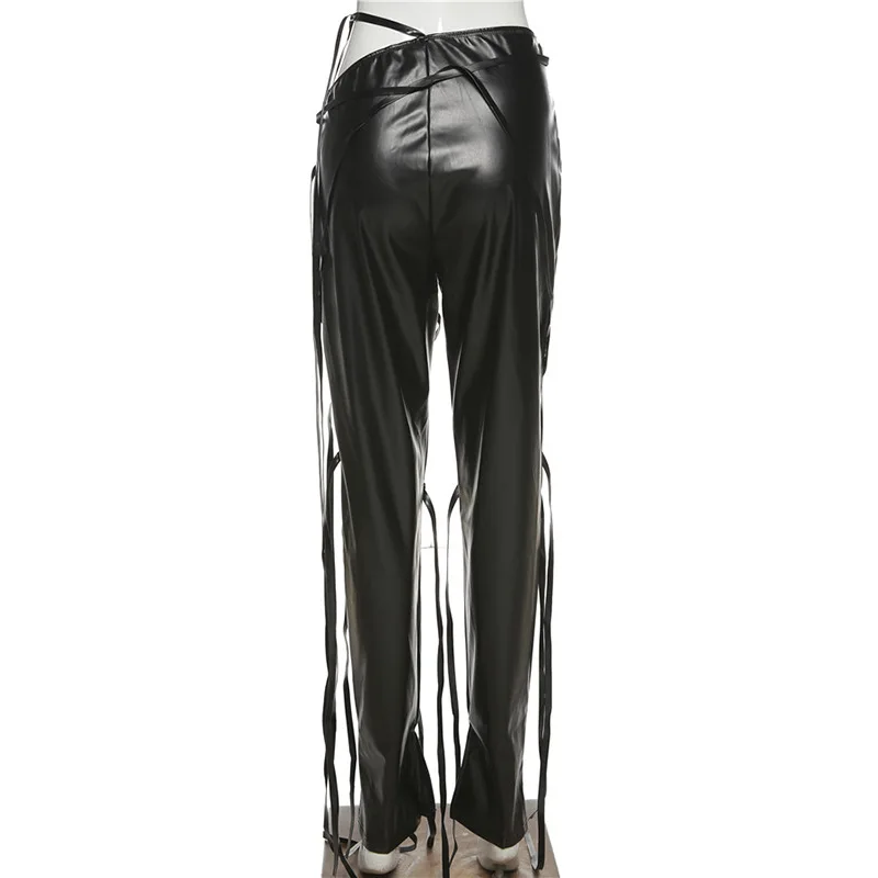 Женские брюки-клеш из искусственной кожи, однотонные брюки со средней талией и разрезами по бокам в уличном стиле, 2020