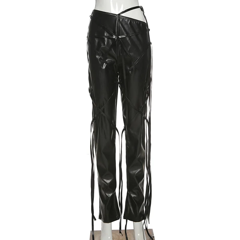 Брюки женские повседневные из искусственной кожи, джоггеры на завяз...