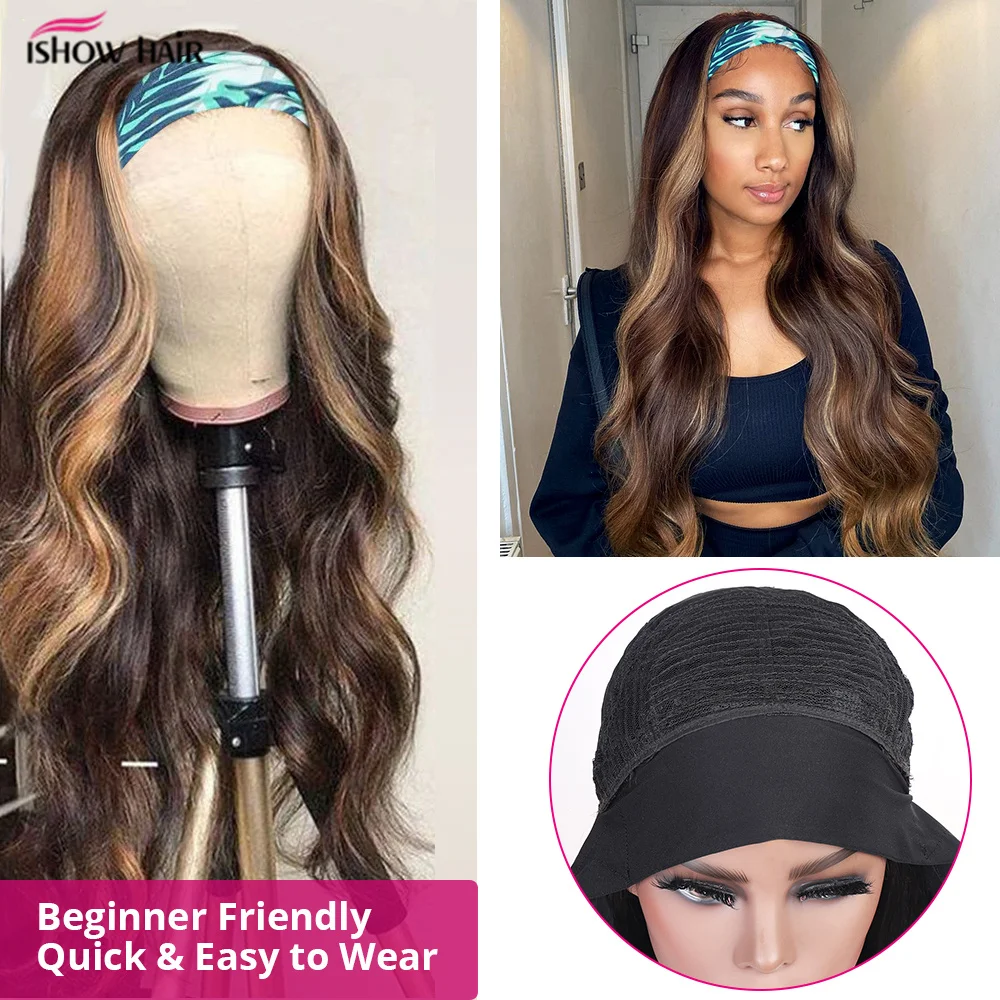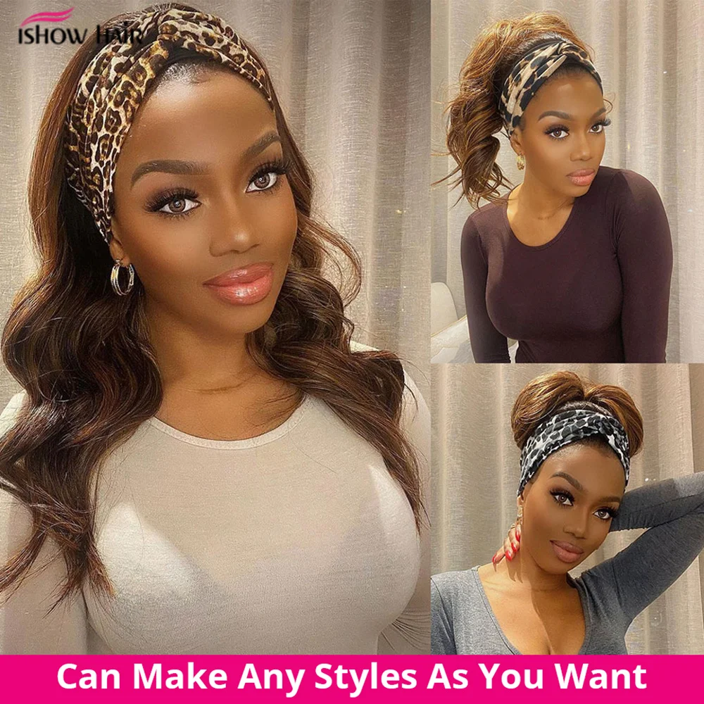 Парики Ishow из парик с головной повязкой натуральных волос для чер...