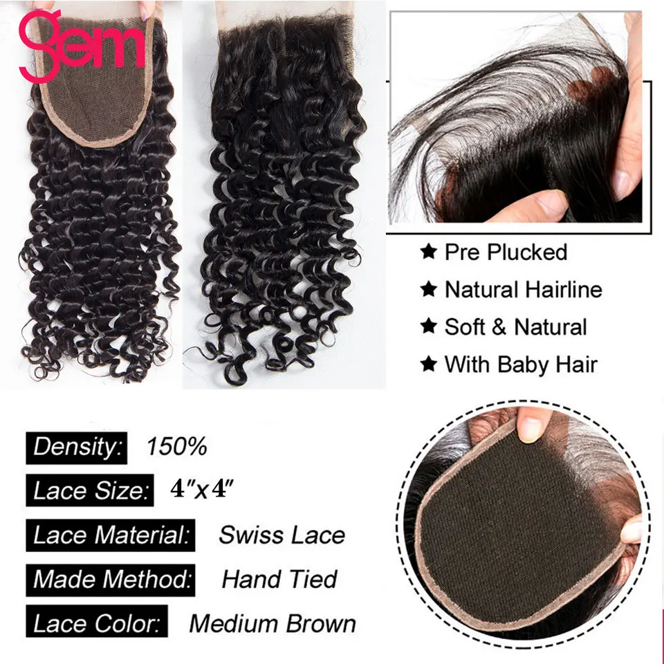 Курчавые прямые пряди с 4x4 кружевной застежкой бразильские драгоце...