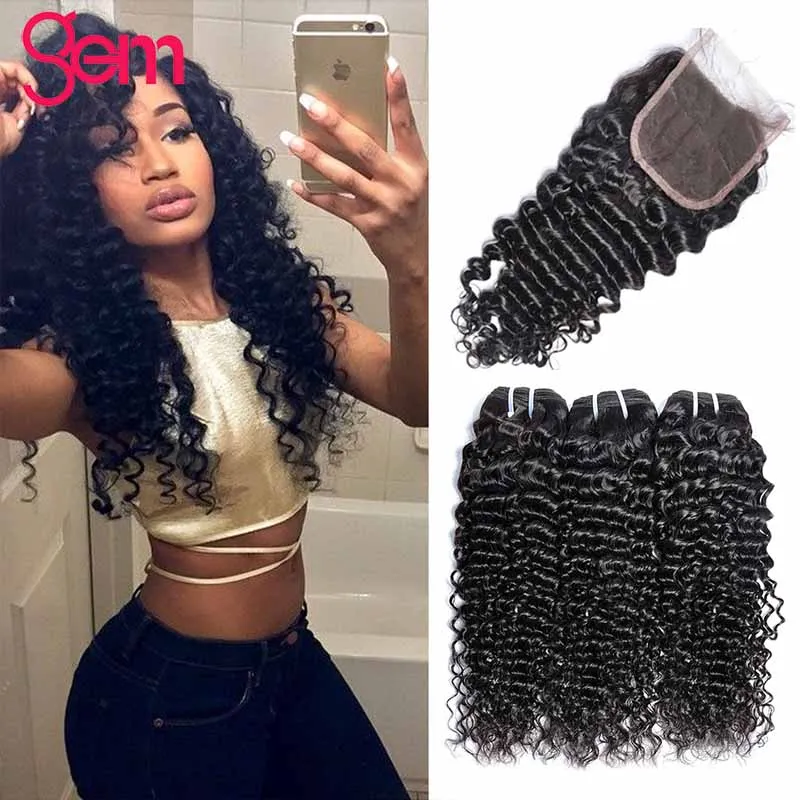 Глубокая волна пряди с закрытием драгоценный камень Человеческие во...