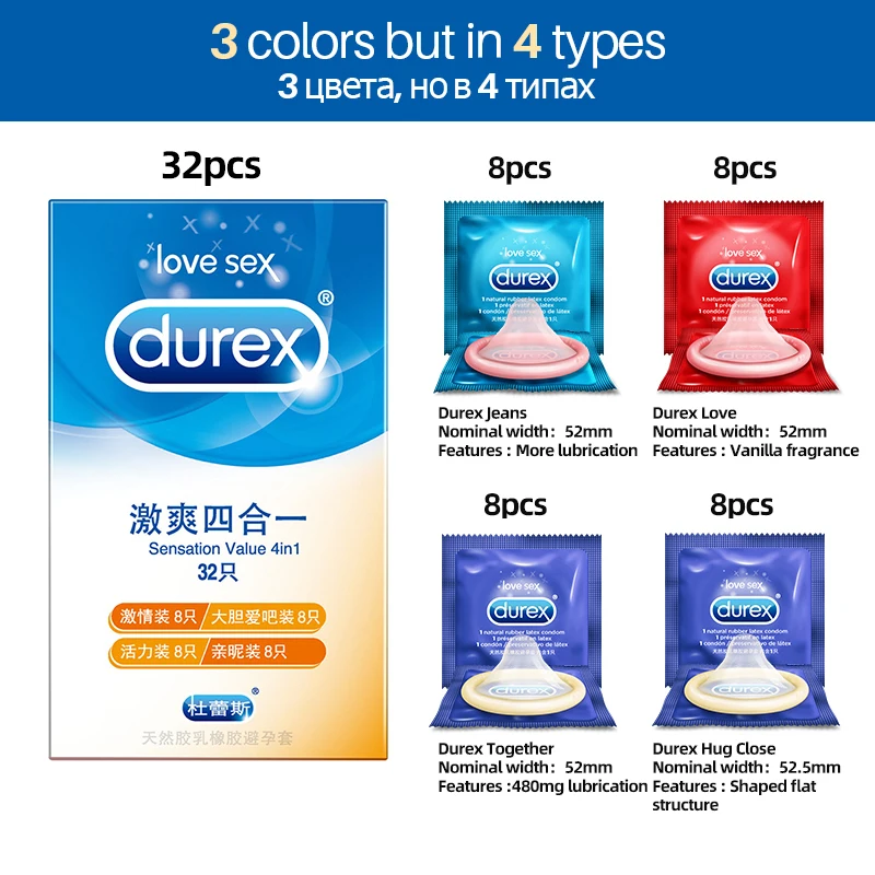 Презервативы Durex, 4 типа, смазка на фруктовой основе, секс-товары, натуральный каучук, латекс, пенис, рукав, секс для мужчин