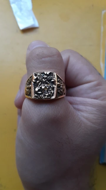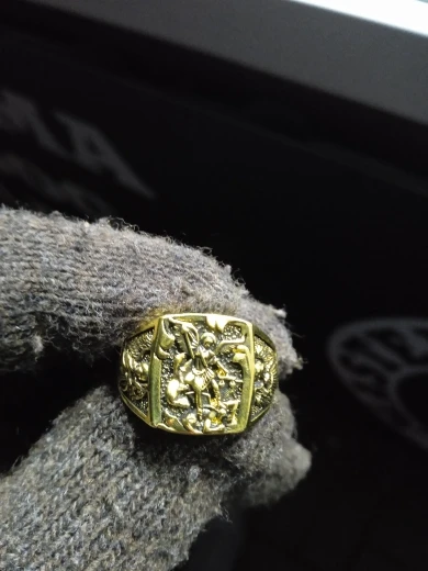 Кольцо мужское, с резьбой в виде золотого двуглавого орла