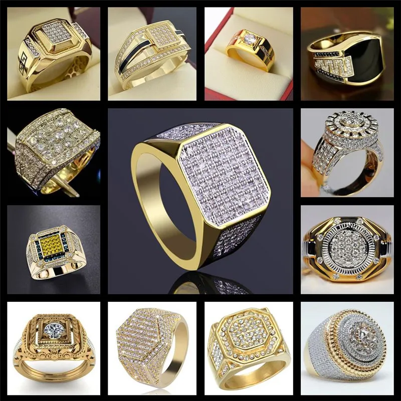 Мужские кольца в деловом стиле с кристаллами циркония, 10 видов, Об...