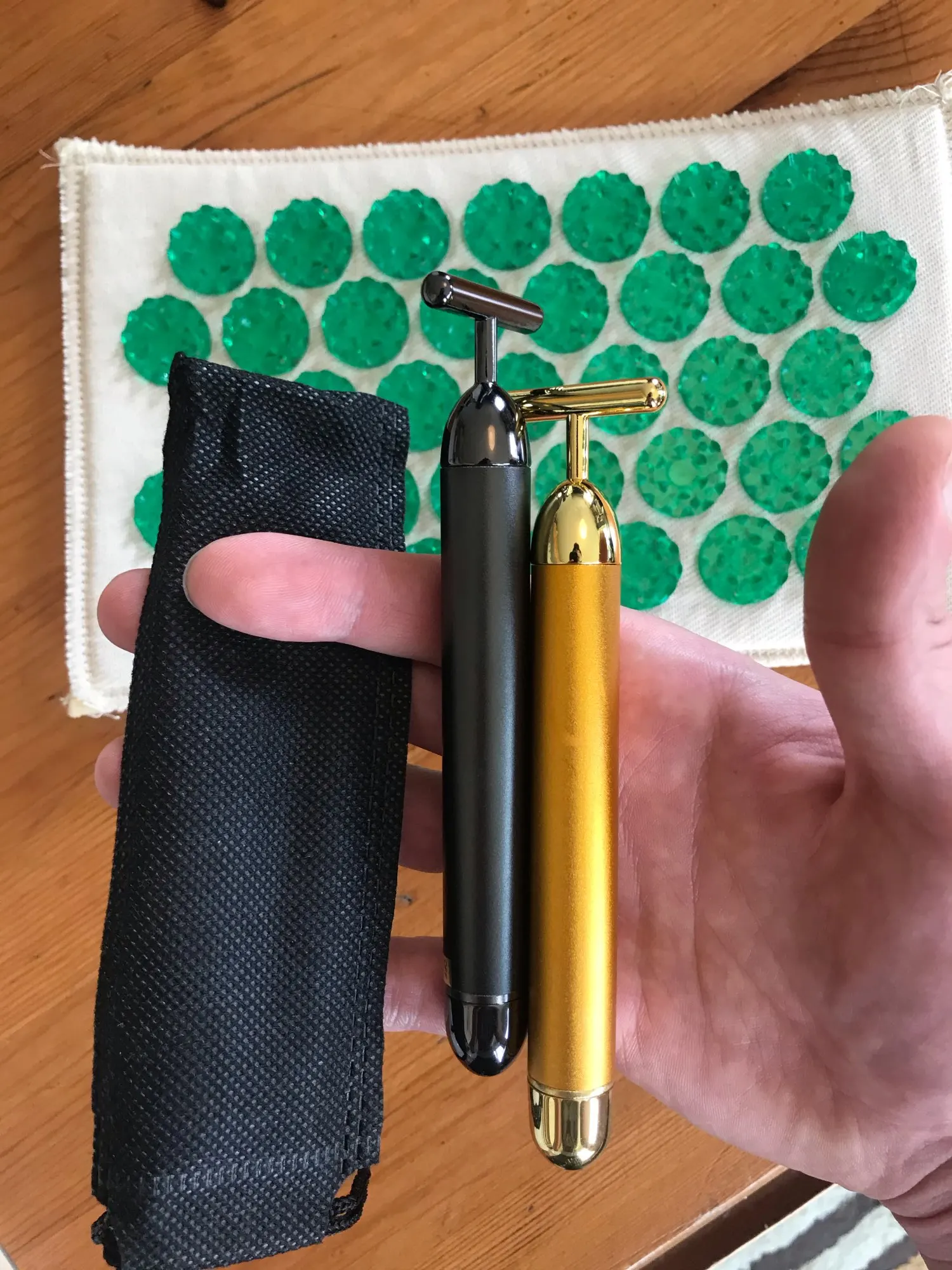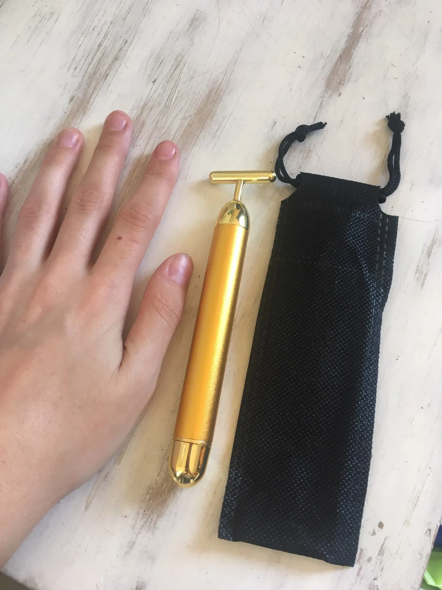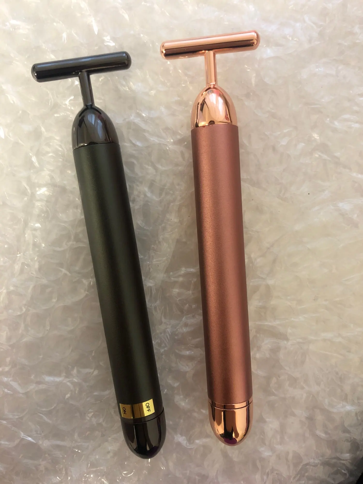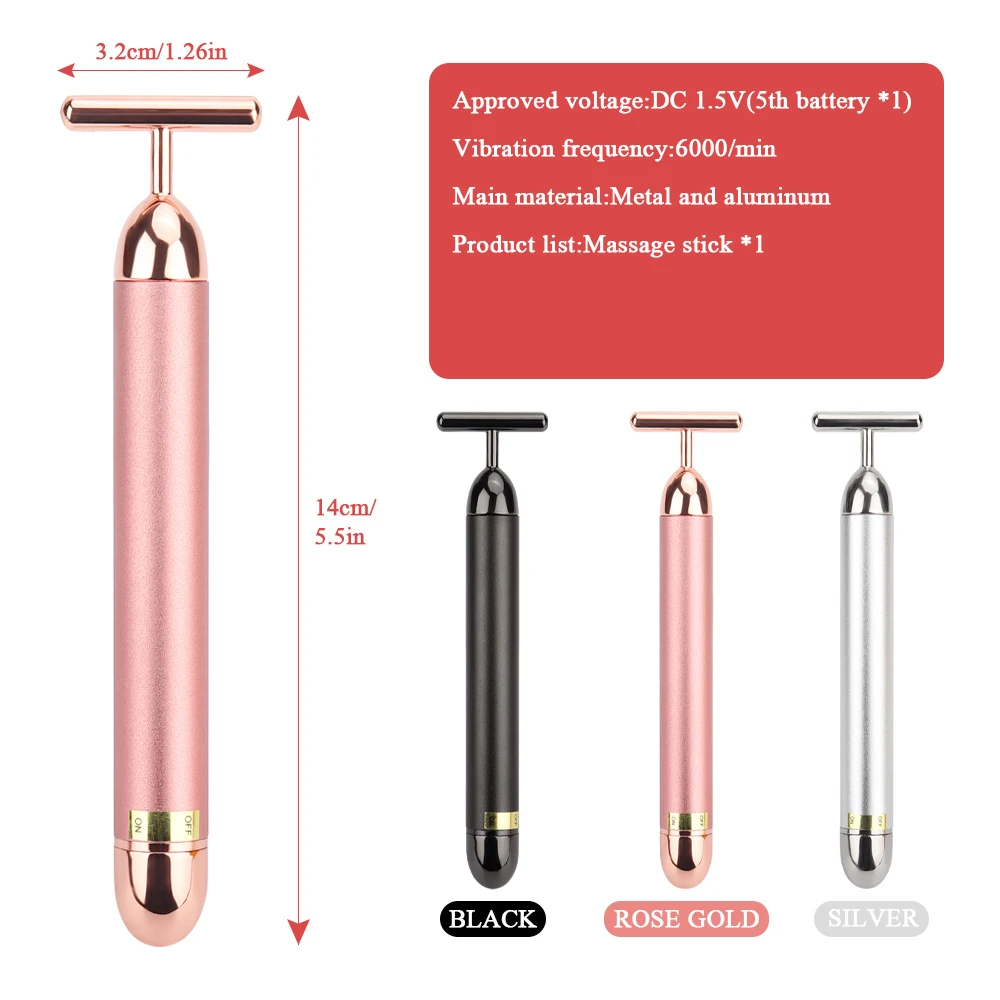 Роликовый вибрирующий массажер для похудения, 24k Gold Face Lift Bar, вибромассажер для ухода за кожей лица, Т-образный виброинструмент