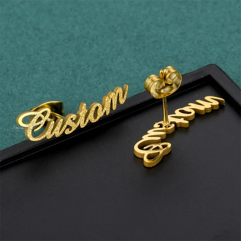 Индивидуальные подвески из нержавеющей стали под заказ, матовые серьги с именем для женщин, индивидуальная именная табличка серьги с буквами Stud, новинка 2021