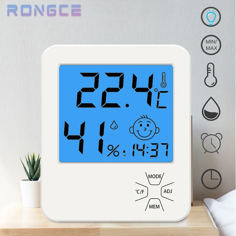 Комнатный цифровой измеритель температуры и влажности, электронный мини-термометр с ЖК дисплеем и гидрометром, со штативом и гигрометром