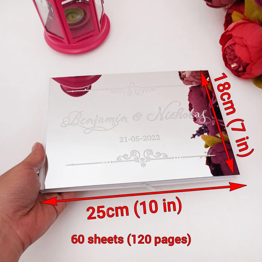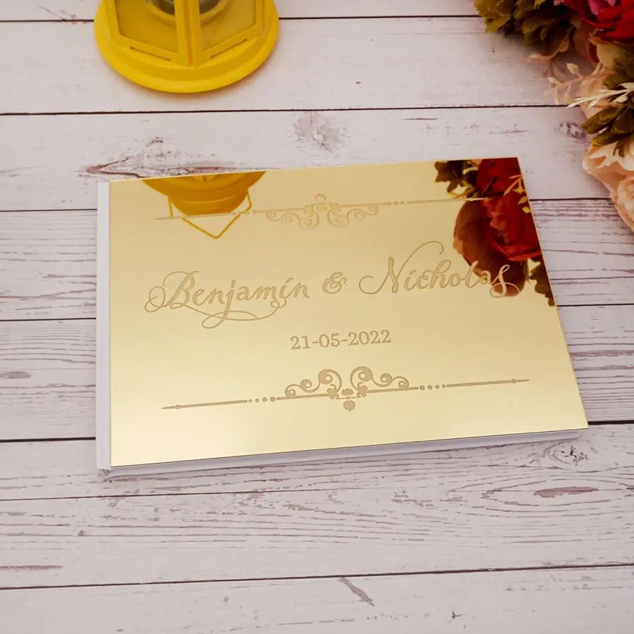 Персонализированные 25x18 см горизонтальный стиль книга пользовательская Подпись Гостевая книга винтажное акриловое зеркальное покрытие скрапбук вечерние сувениры