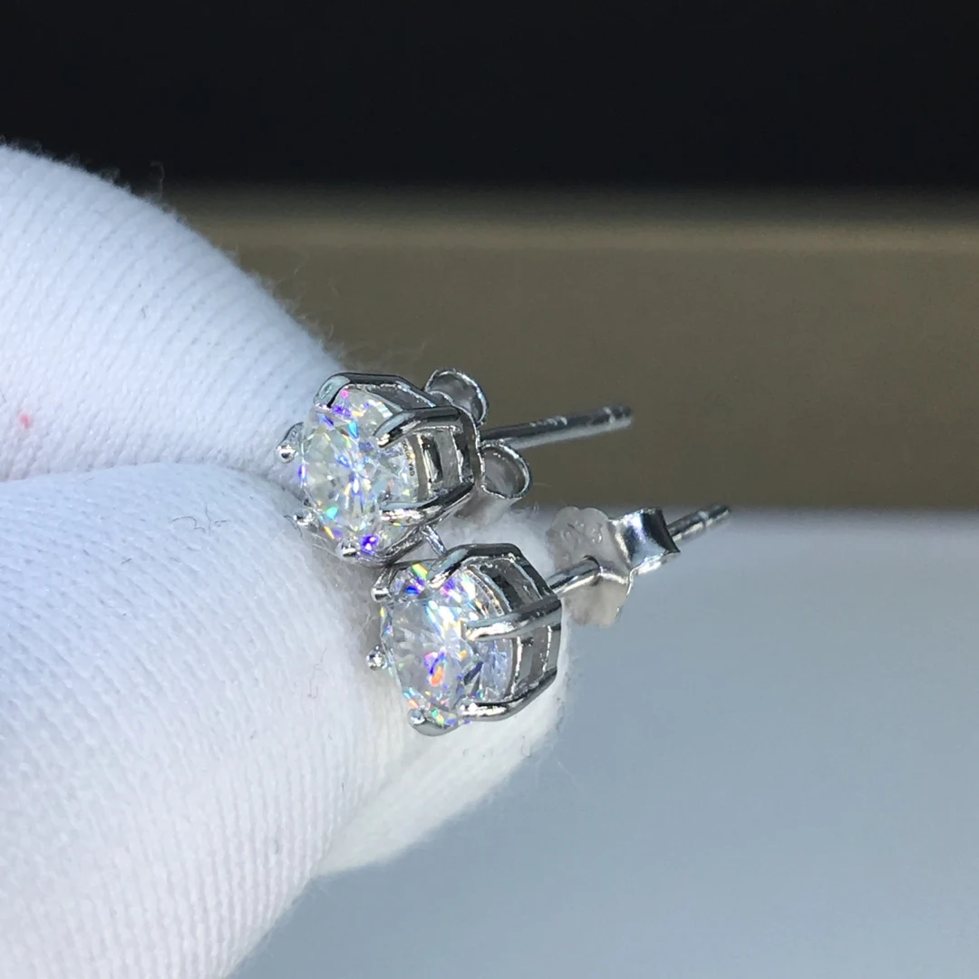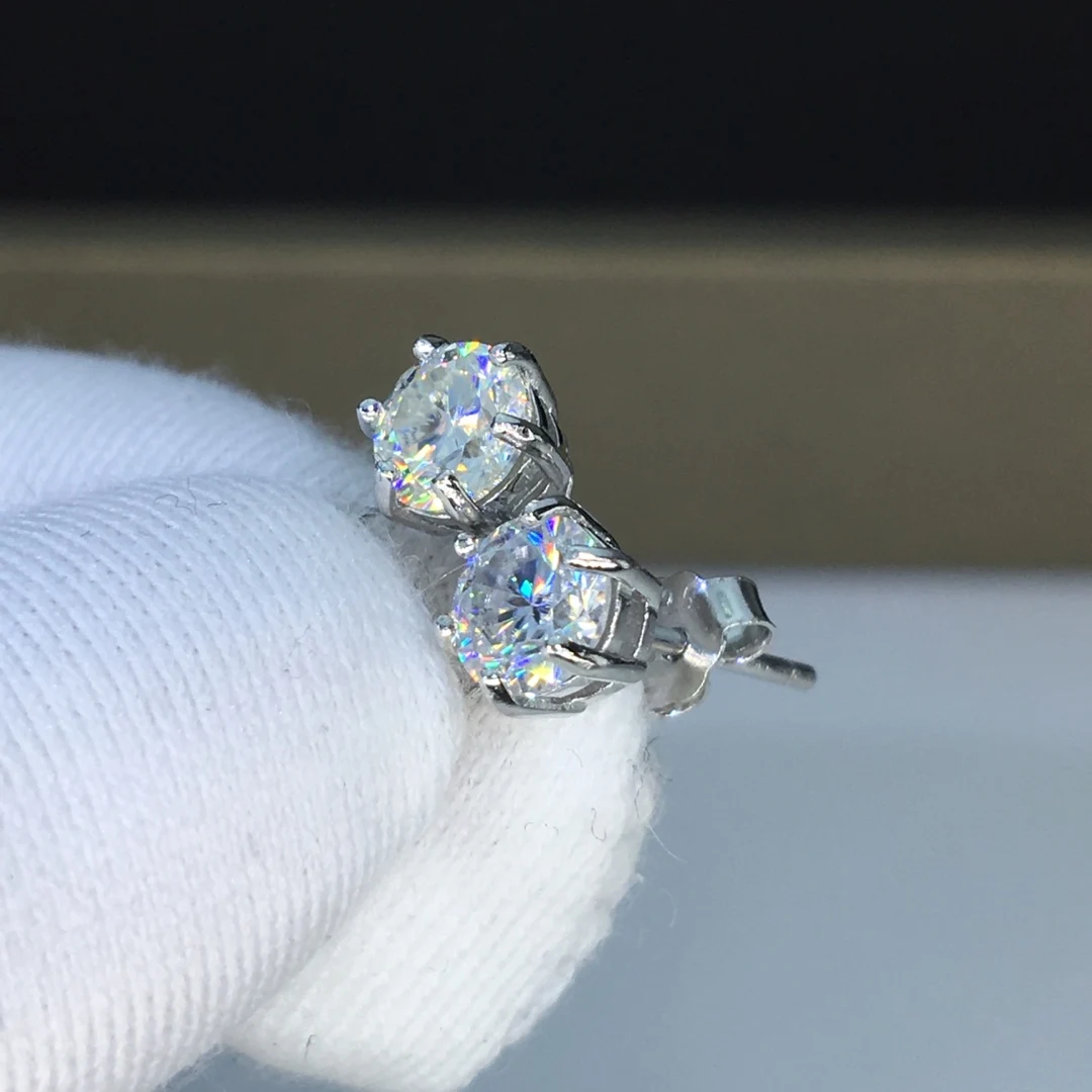 Женские серьги из серебра 925 пробы, Круглые, сверкающие, 1 карат, 6 закрепок, бриллиант огранки, серьги-гвоздики с муассанитом