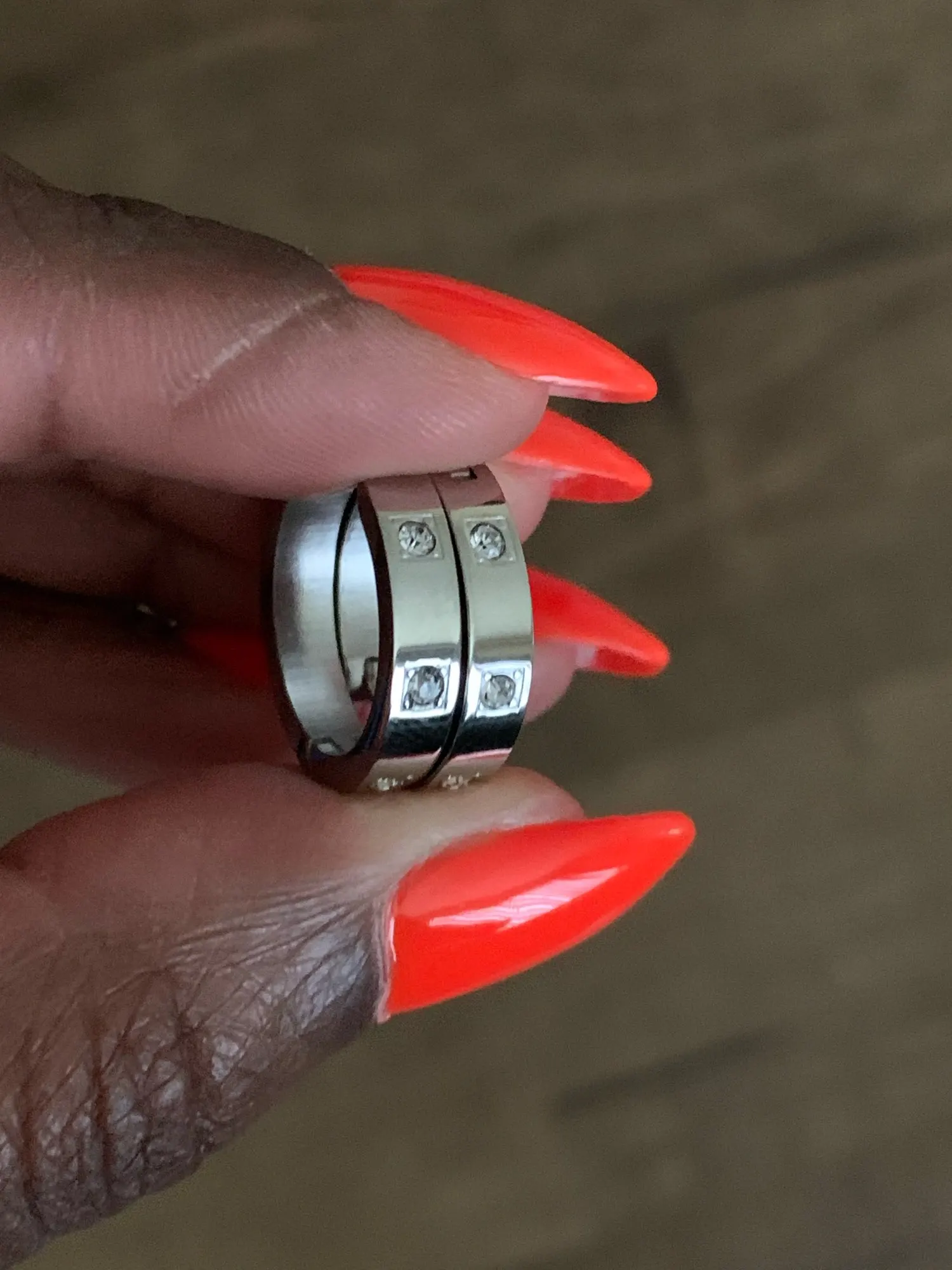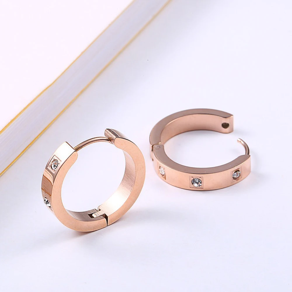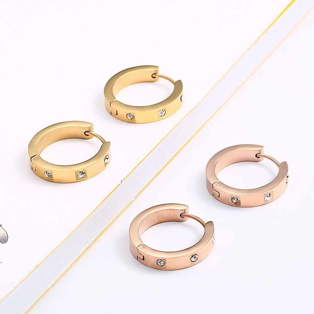 Женские серьги-кольца из нержавеющей стали с кристаллами