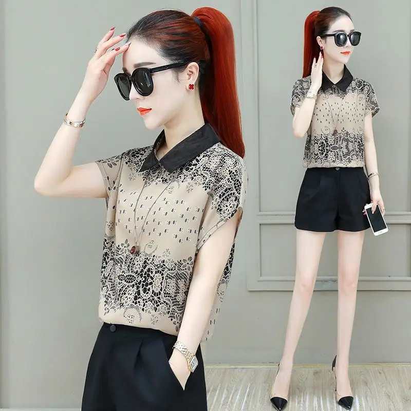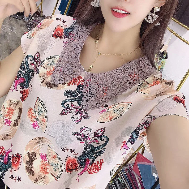 Футболка с короткими рукавами футболка с принтом Летняя женская с О-образным вырезом Темперамент повседневные свободные кружевные блузки новые модные топы размера плюс M-4XL