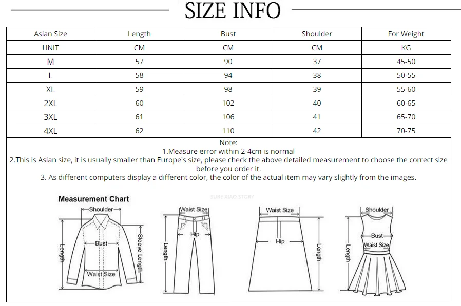 2. Это Азиатский Размер, он обычно меньше, чем европейский размер, пожалуйста, проверьте вышеуказанные подробные измерения, чтобы выбрать правильный размер, прежде чем заказать его.