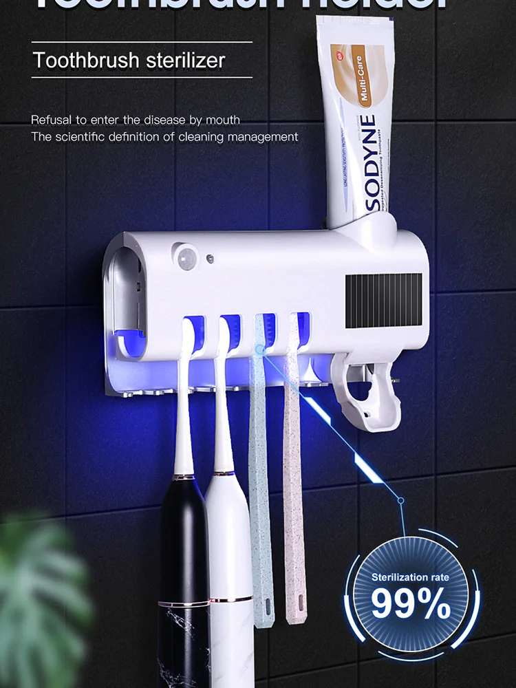 Держатель для зубных щеток GESEW на солнечной энергии, автоматический выдавливатель зубной пасты, настенный дозатор зубной пасты, аксессуары ...
