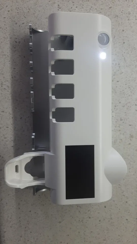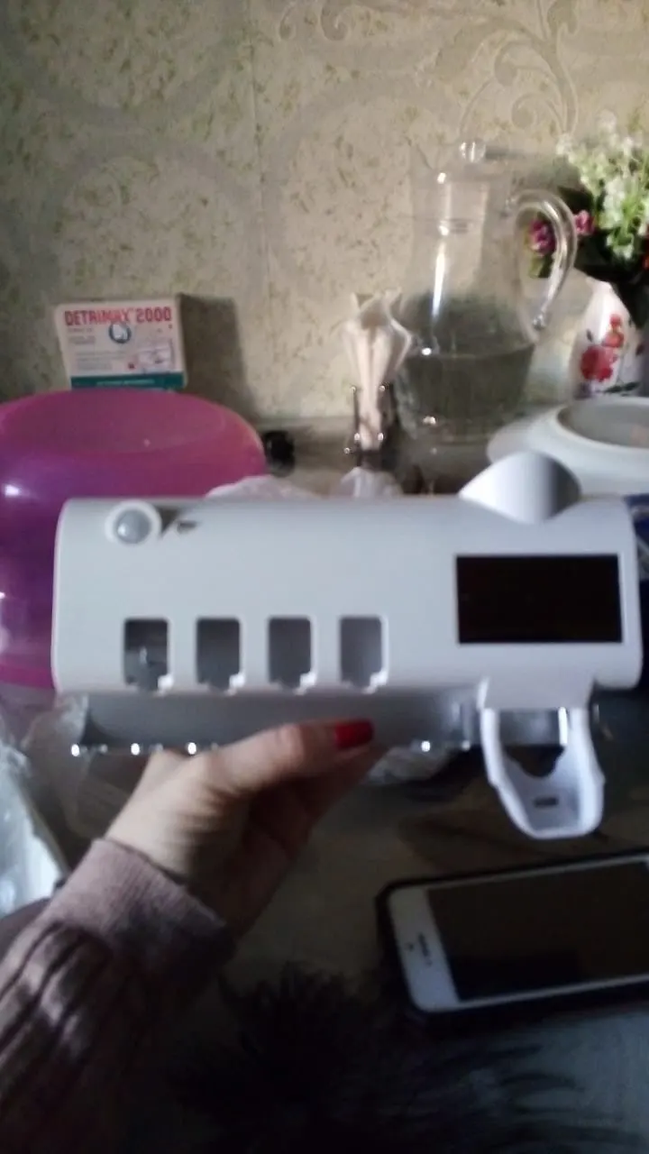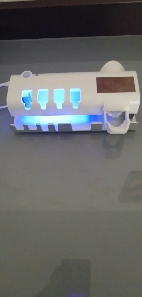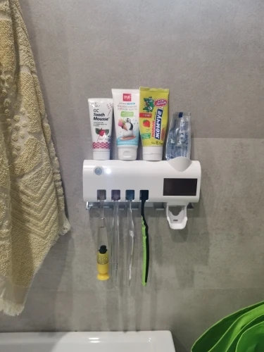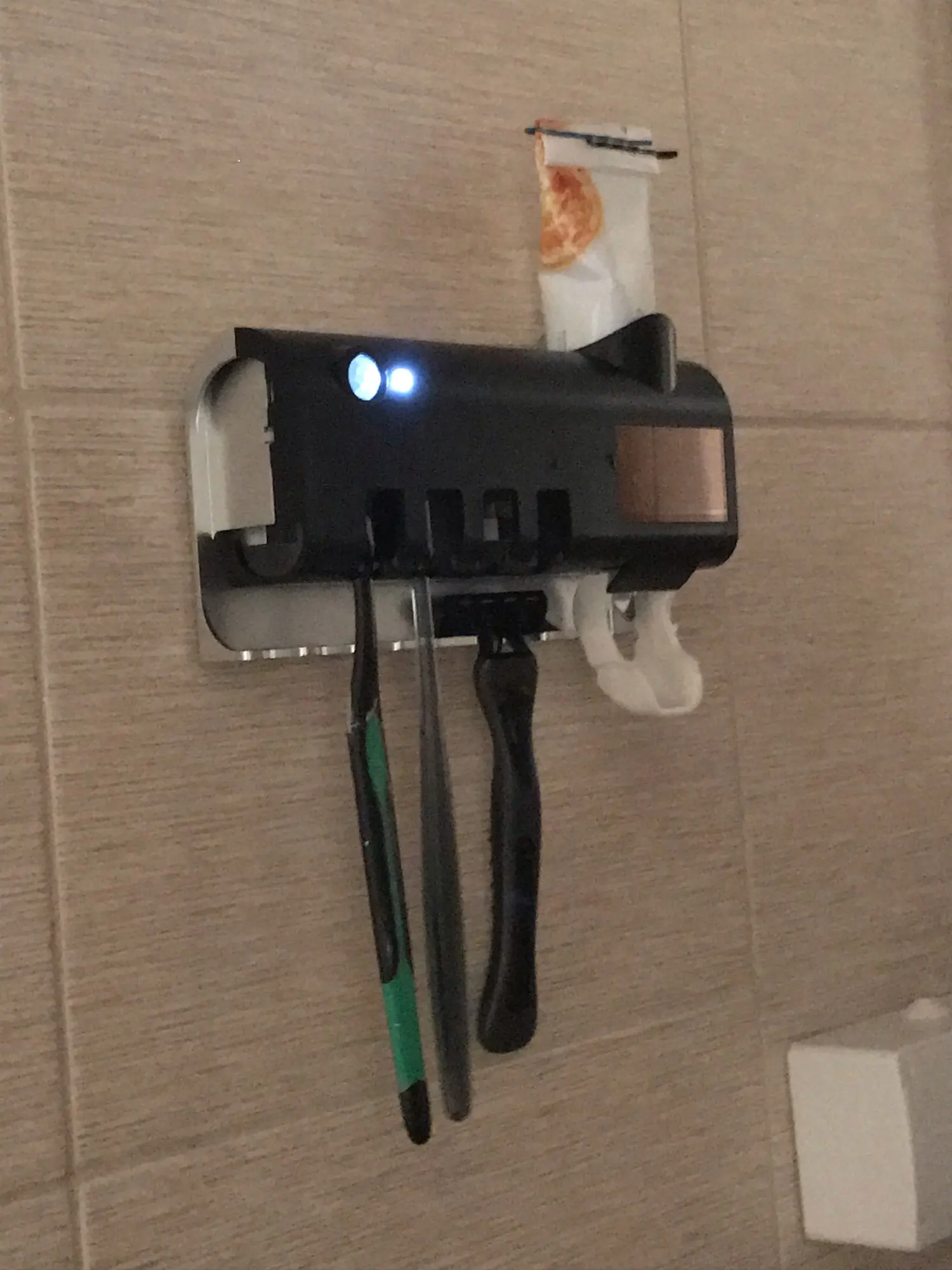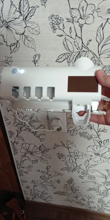 Особенно это устройство понравилось моей дочери. Экономно выдавливает зубную пасту. Очень интересно светится и наверное хорошо обеззараживает зубные щётки и бритвы. Удобно разместить туалетные принадлежности.