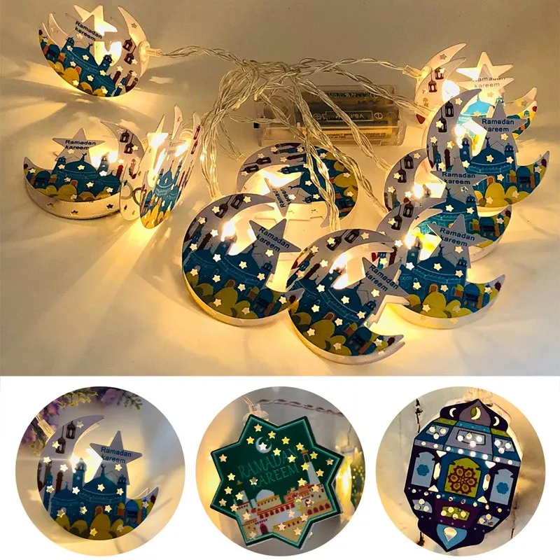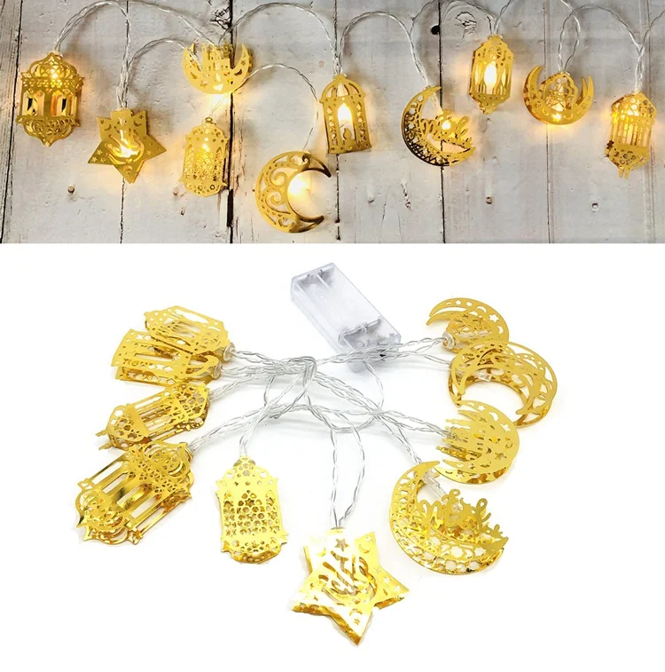 10 Огни Рамадана украшение Луна Звезда светодиодные гирлянды ИД Муб...