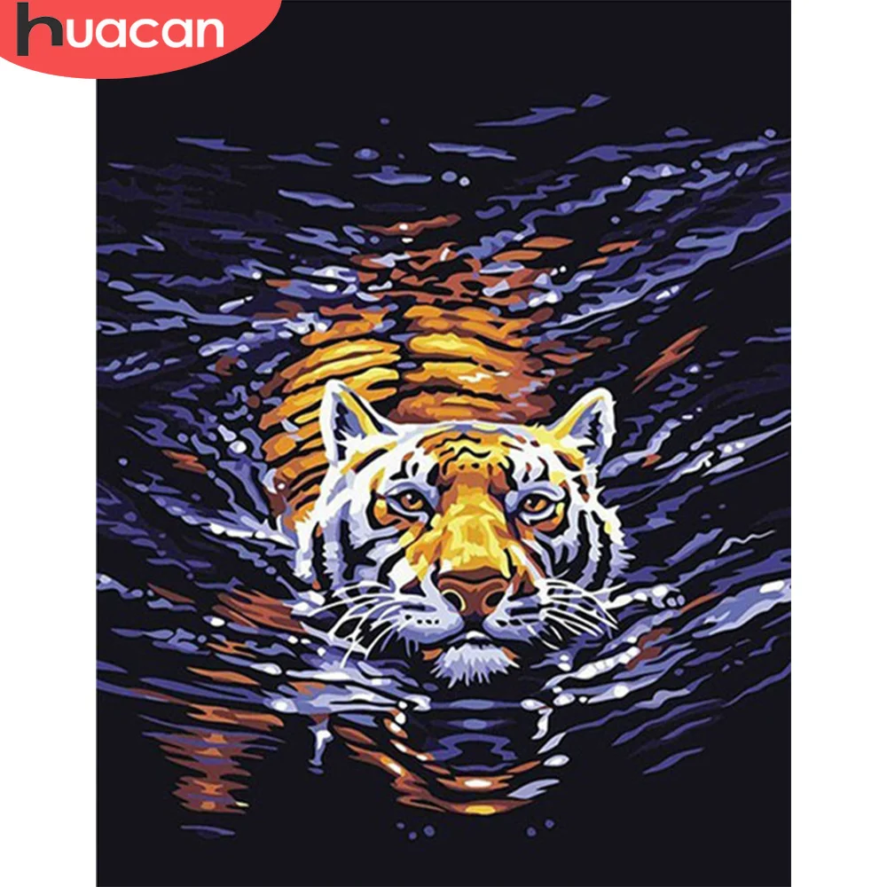 HUACAN картина по номерам DIY комната настенные художественные картины по номеру тигр животные для взрослых украшение дома