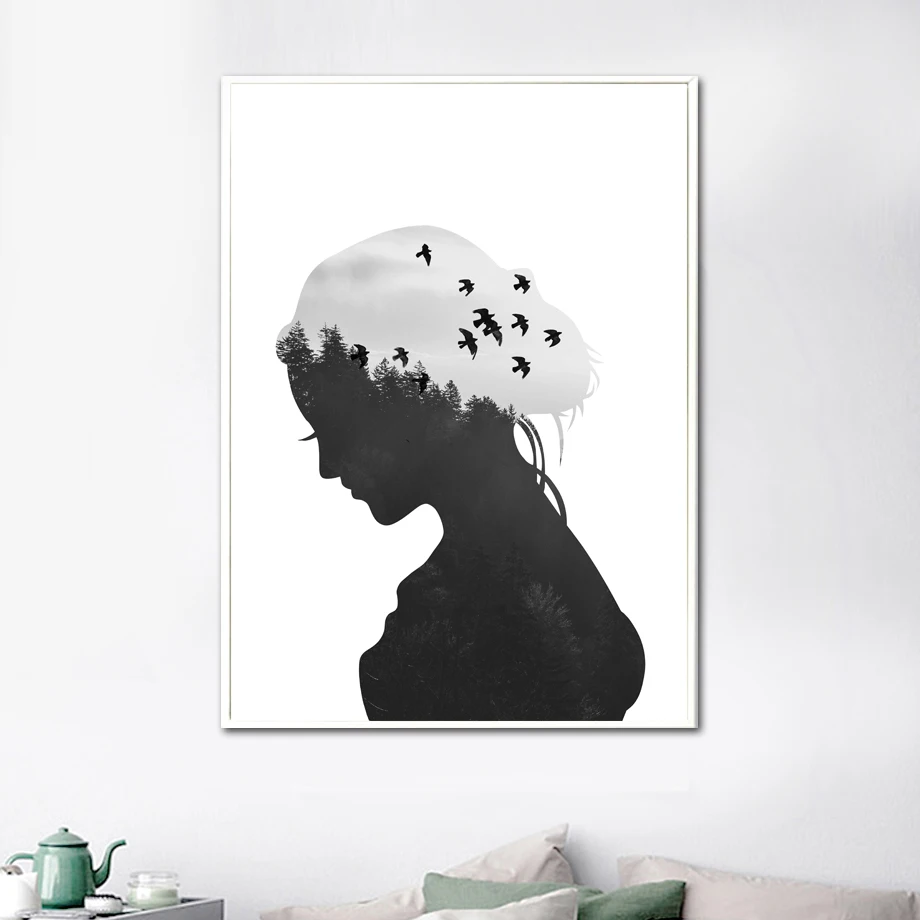 Черно-белая абстрактная девушка лес туман дорога настенная Картина на холсте скандинавские постеры и принты настенные картины для декора гостиной