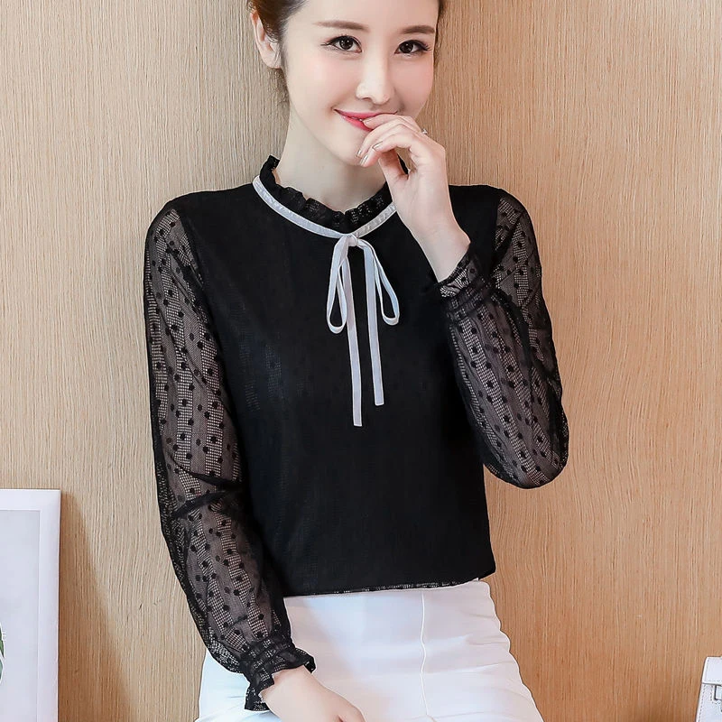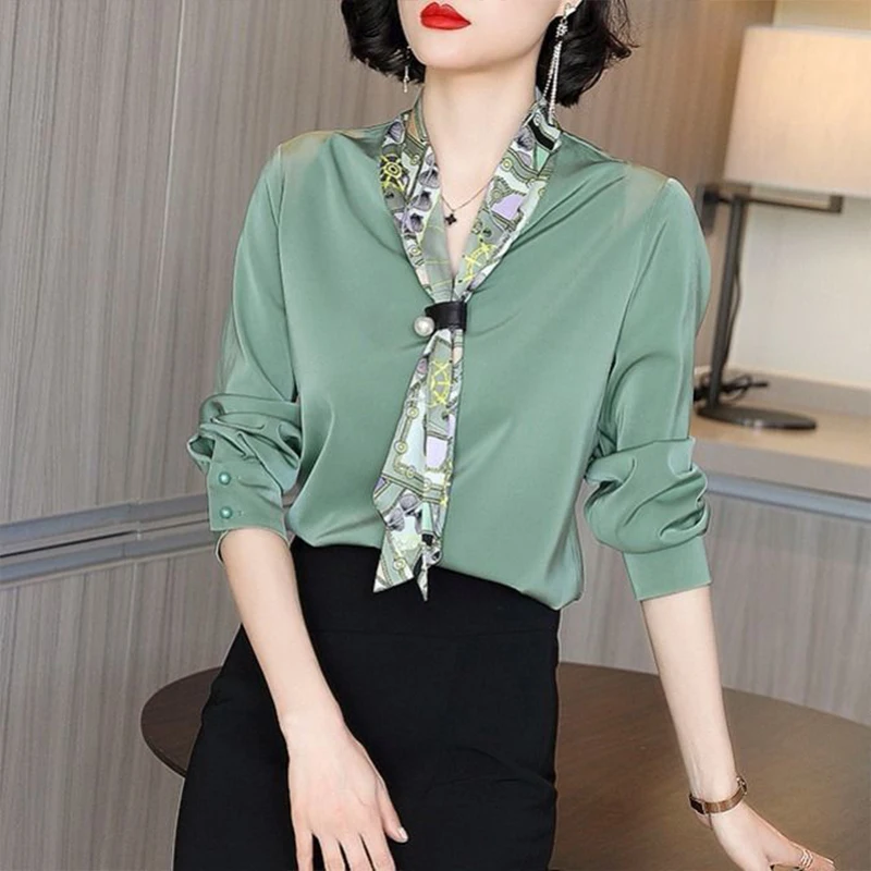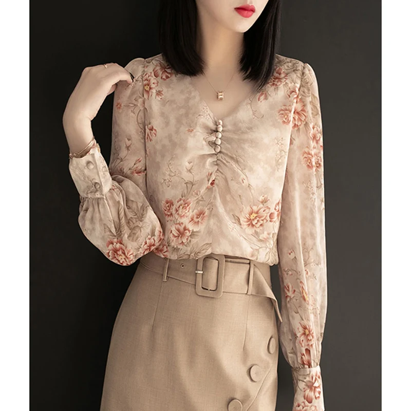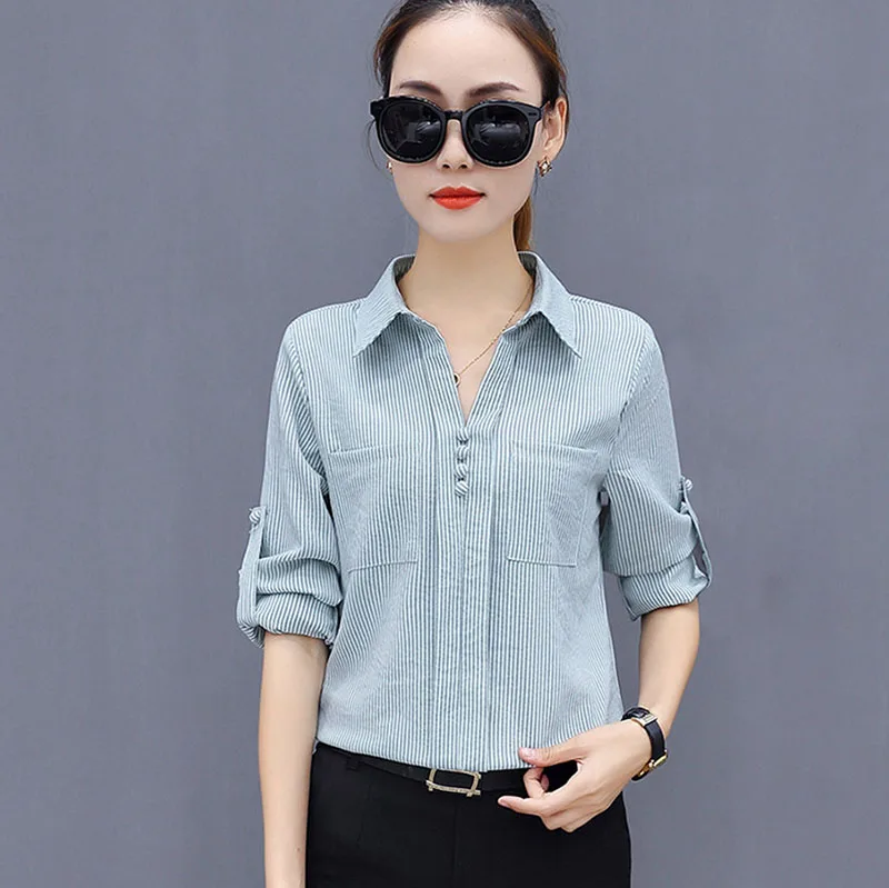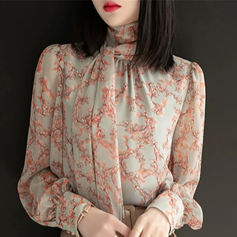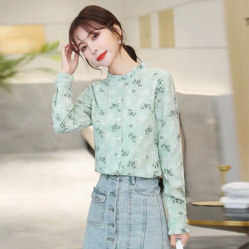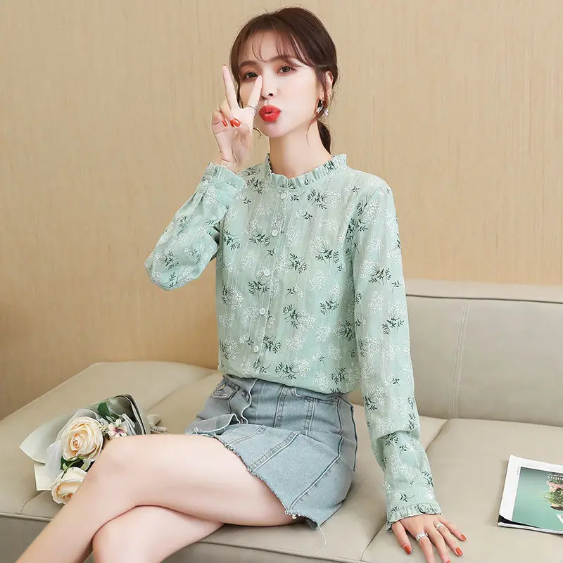 Женские блузки с длинным рукавом весенняя хлопковая рубашка с высоким, плотно облегающим шею воротником с принтом Кнопка элегантный 2021 Новые повседневные топы
