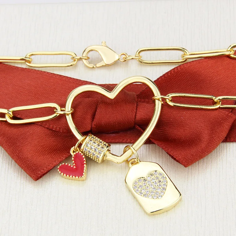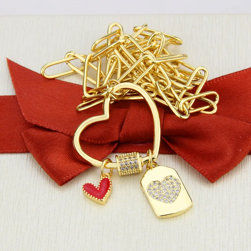 Золотистое Ожерелье с медной застежкой-пряжкой из циркона, романтическое ожерелье красного цвета с полой подвеской в форме сердца, подарочное ювелирное изделие в готическом стиле