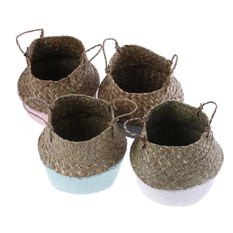 Корзины ручной работы для хранения корзины Складные соломенные Лоскутные плетеные Ротанговые водоросли живот садовый цветочный горшок корзина для цветов