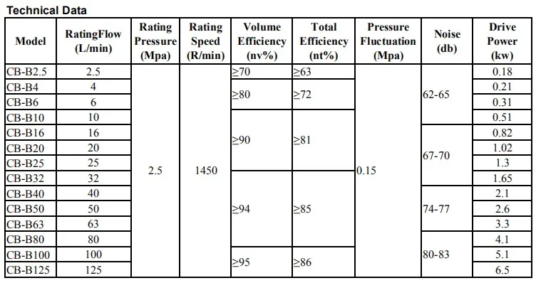 1. Зубчатые насосы серии CB-B подходят для транспортировки минеральных масел с вязкостью от 1 до 8 паскалей и растительных масел с аналогичными свойствами. Температура масла не превышает 100 ℃, таких как гидравлическое масло, механическое масло и мазут.