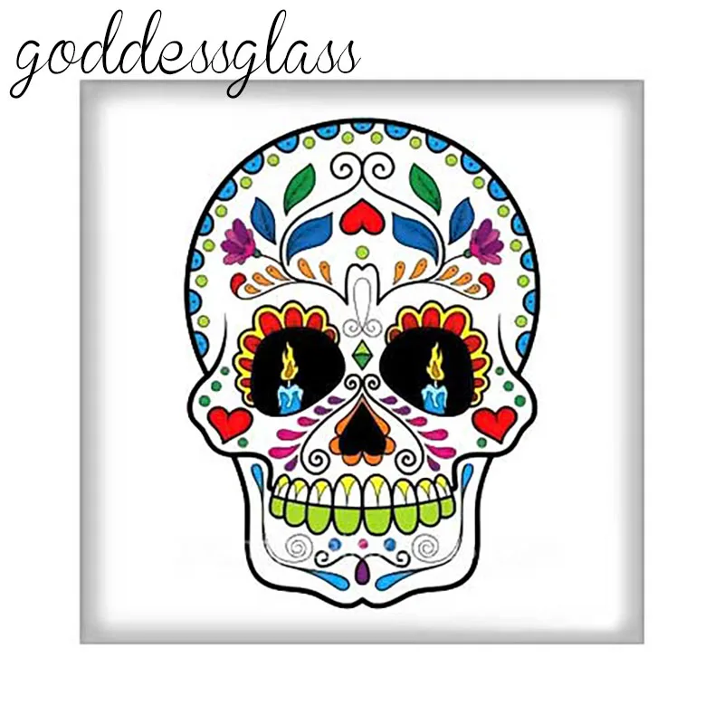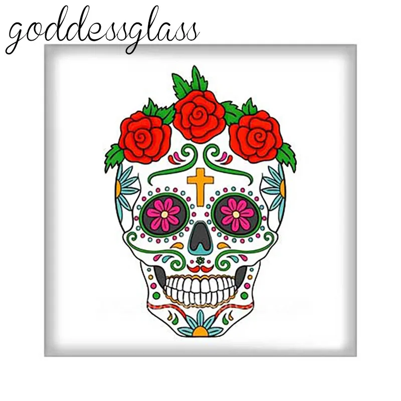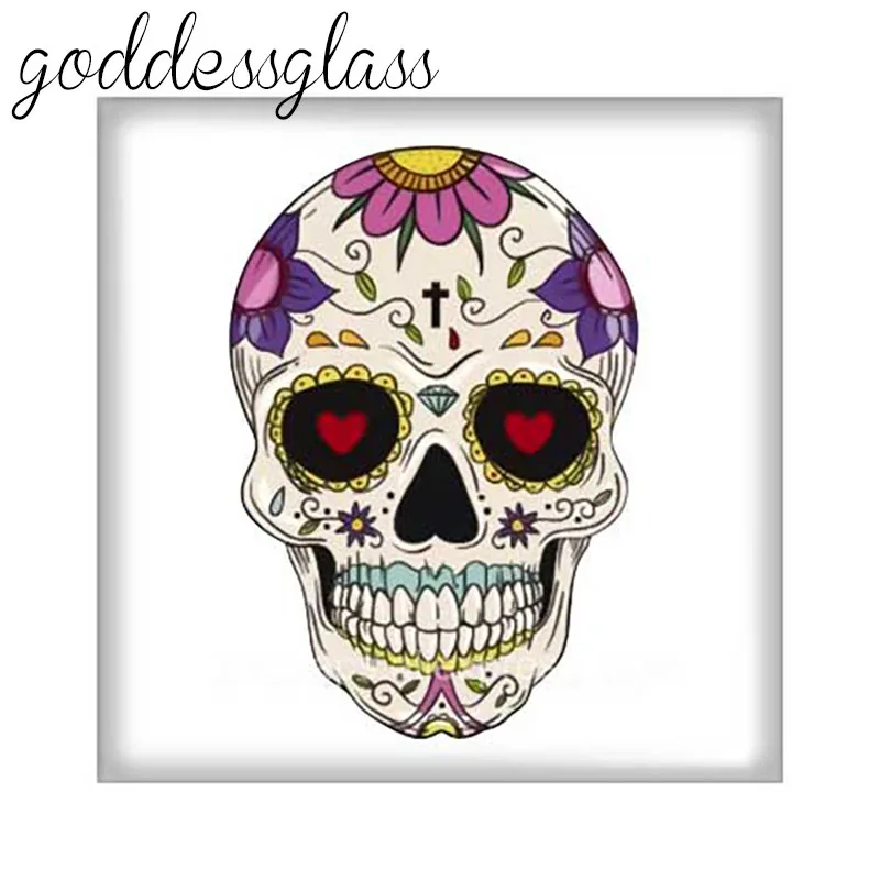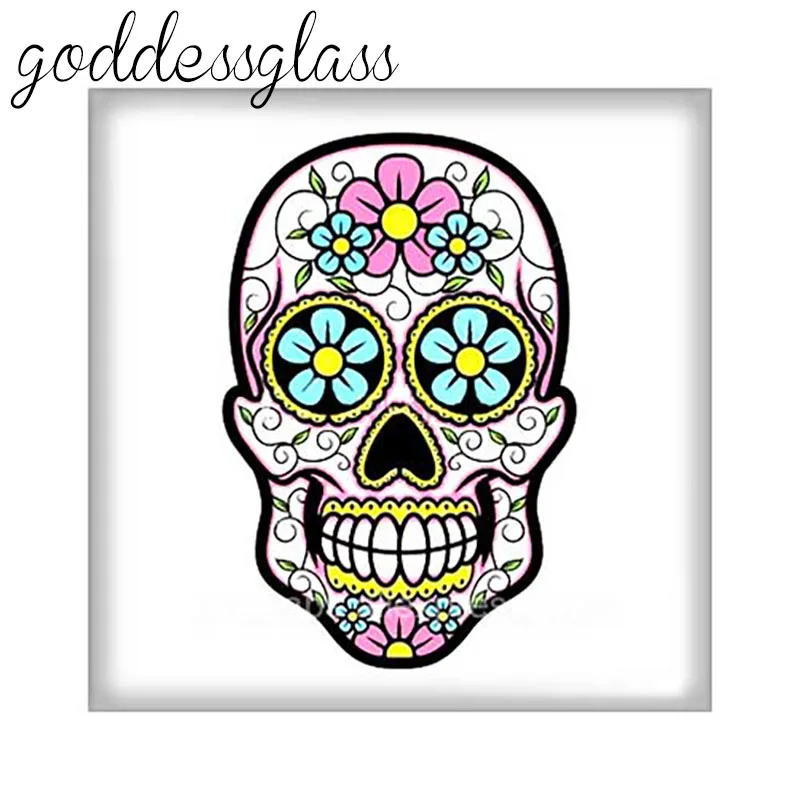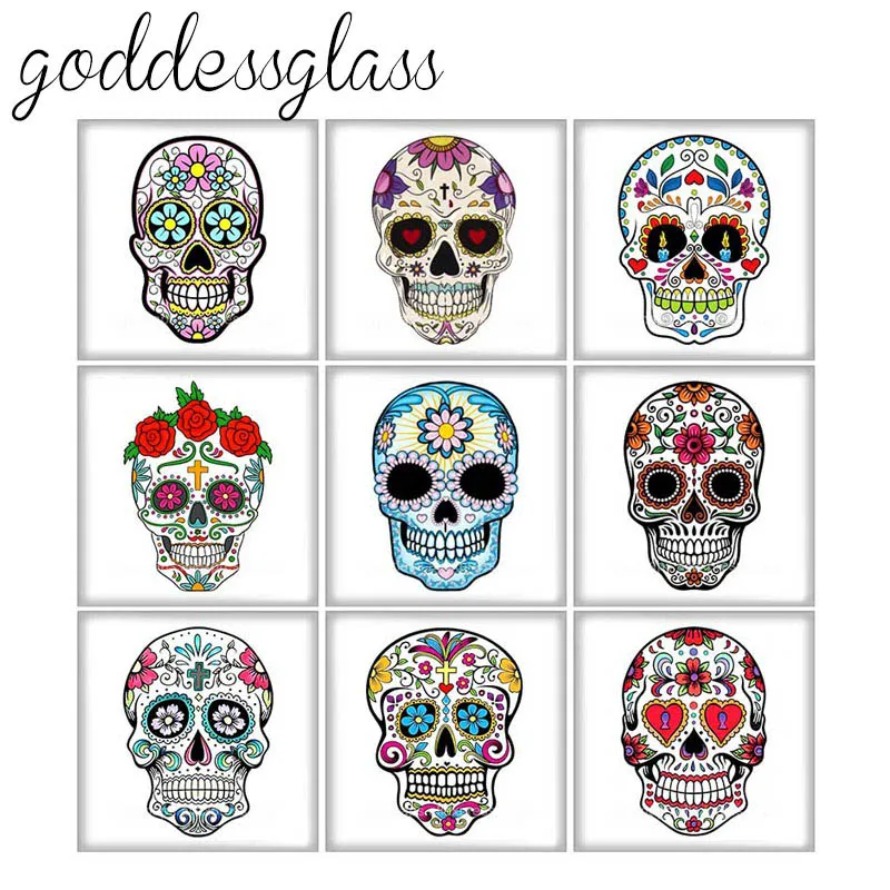 Новинка; Платье с цветочным узором в виде черепа узоры в стиле панк с квадратным 10 шт. Смешанные 12 мм20 мм25 мм30 мм кабошоны разрисованные изделия из стекла демо с плоской задней частью, украшения своими руками