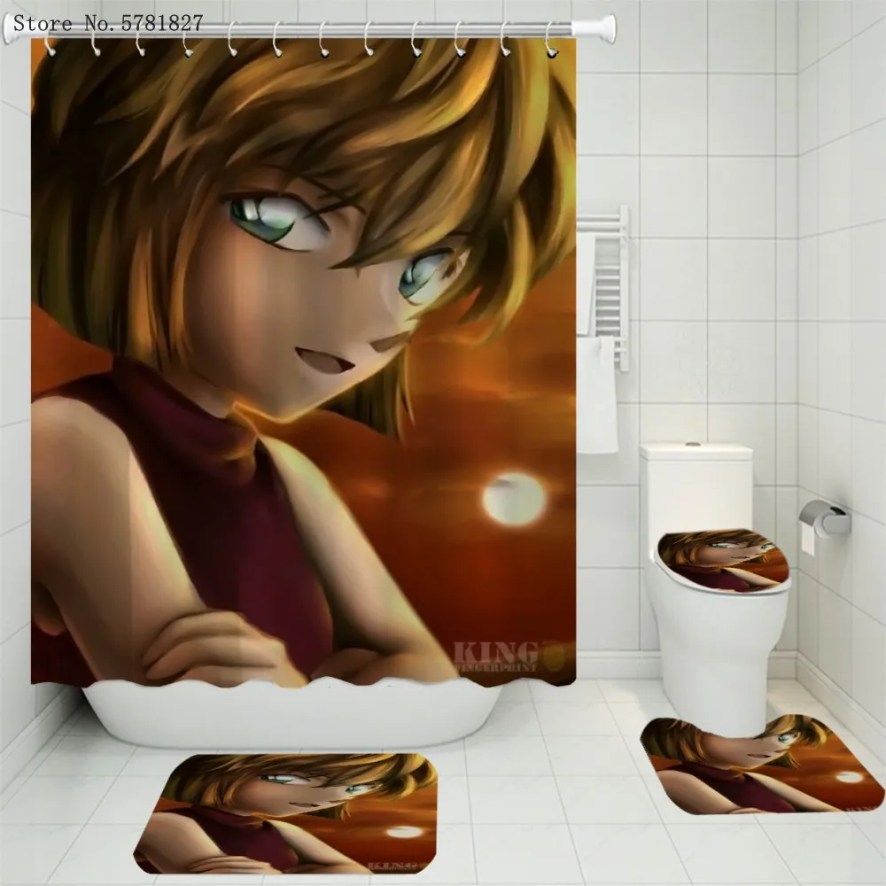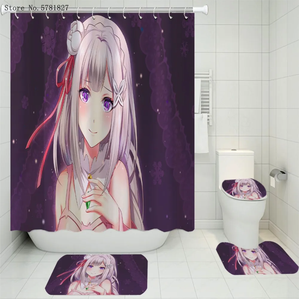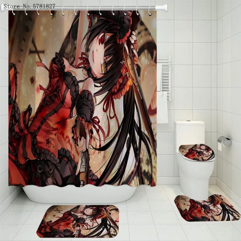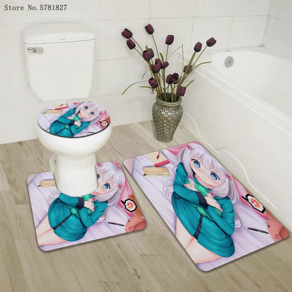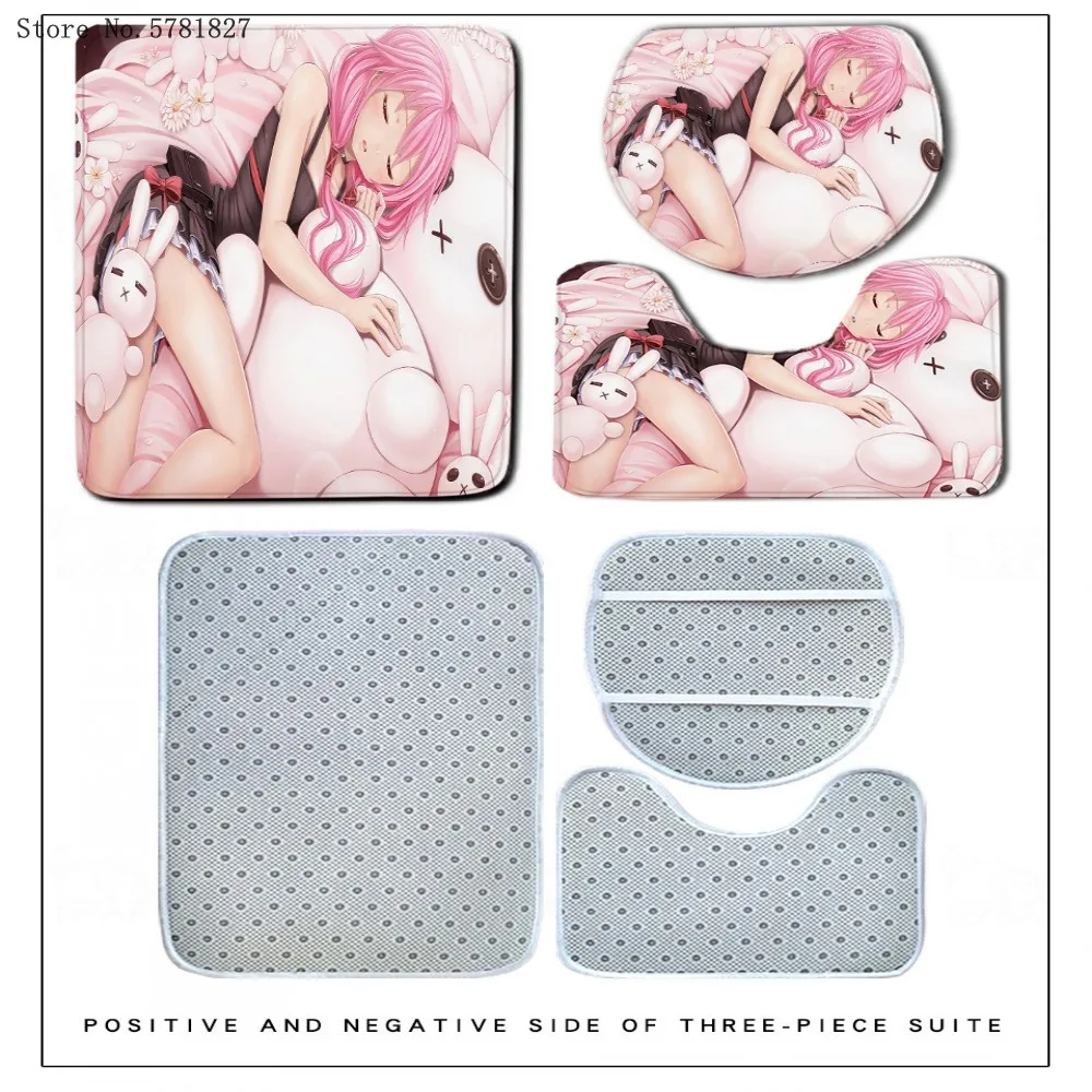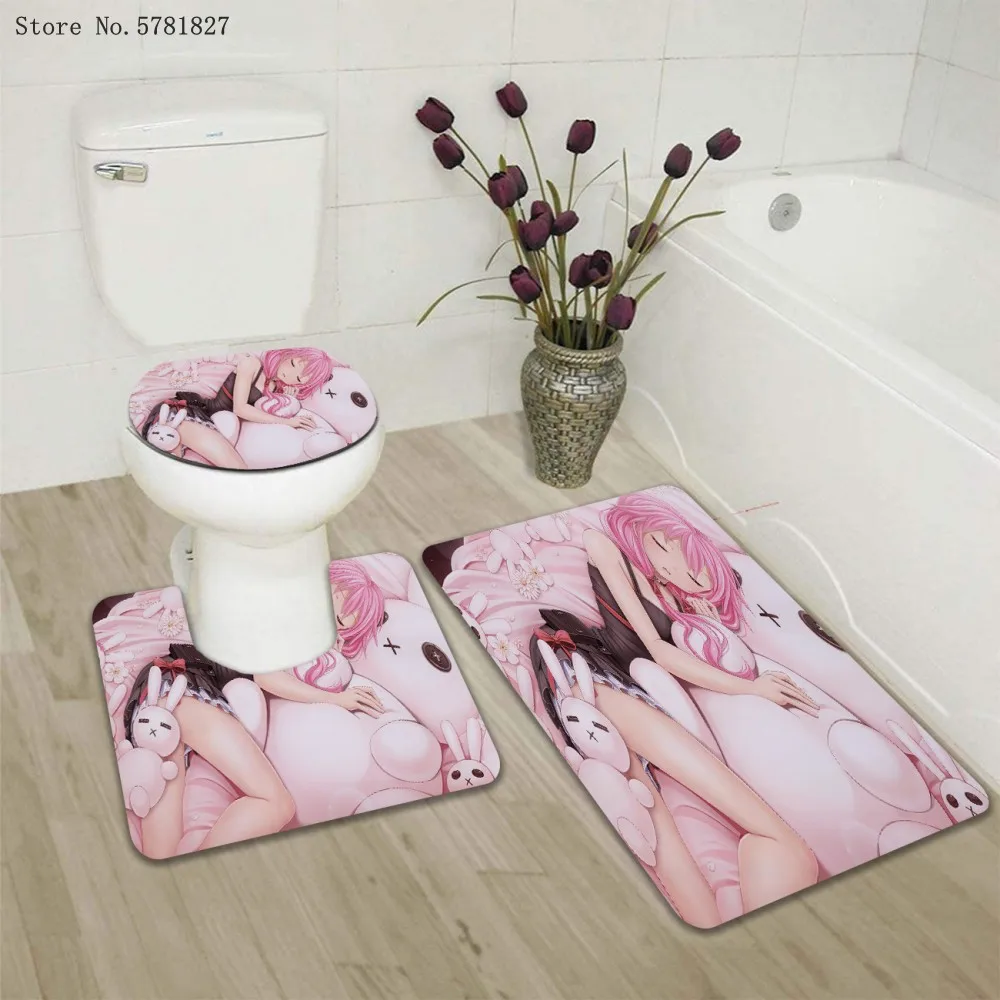34 шт. мультяшный чехол для ковра, чехол для унитаза, набор ковриков для ванной, комплект японских занавесок для ванной в стиле аниме, Комплект штор для душа для сексуальных девушек