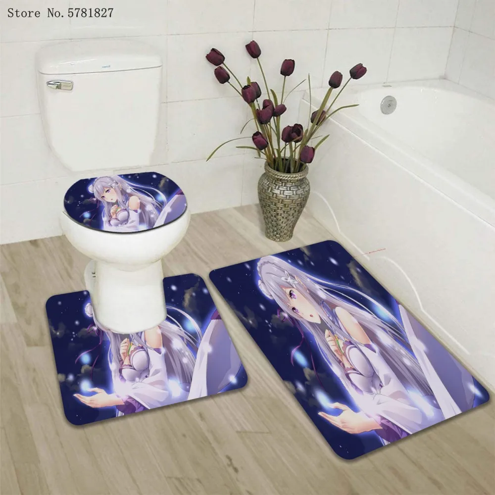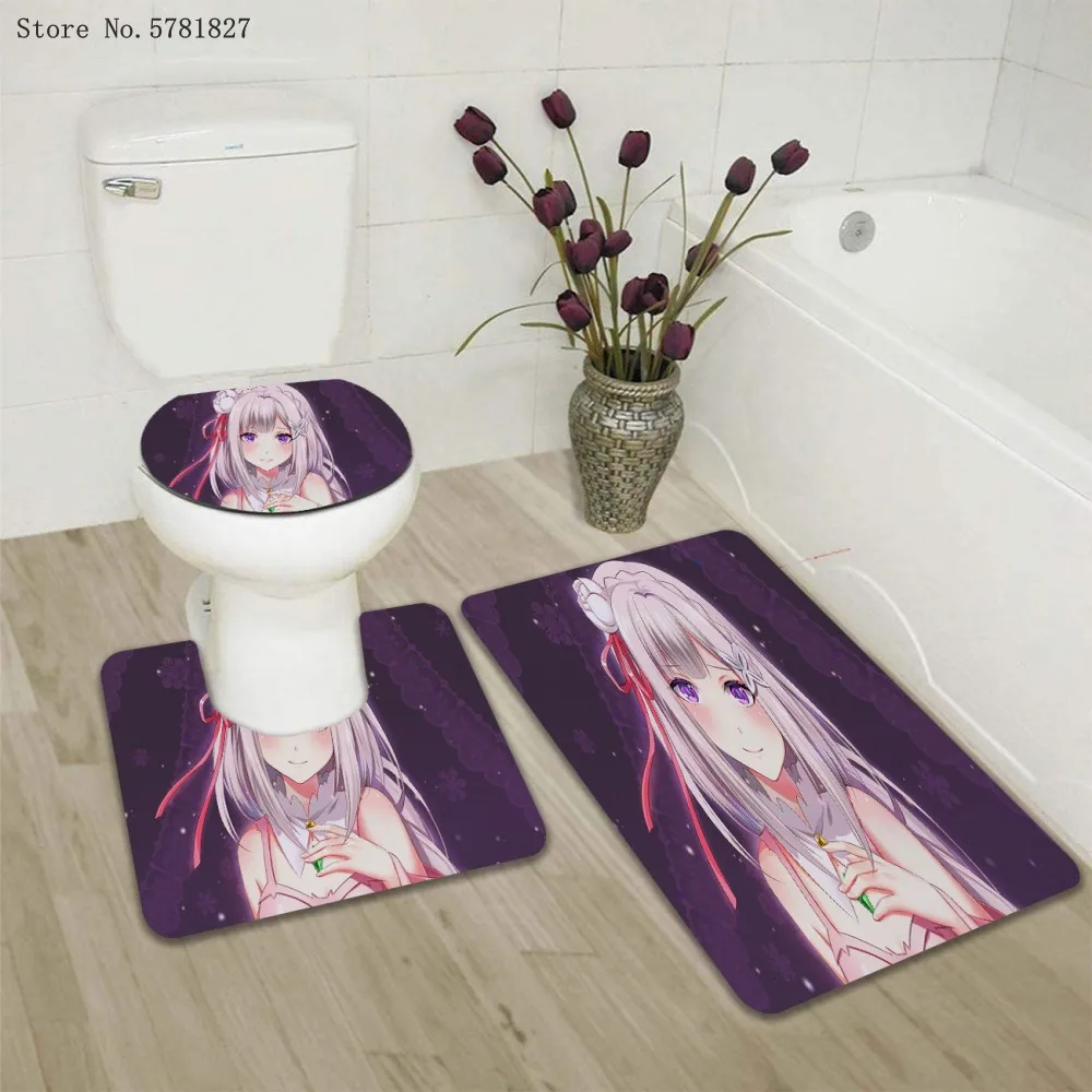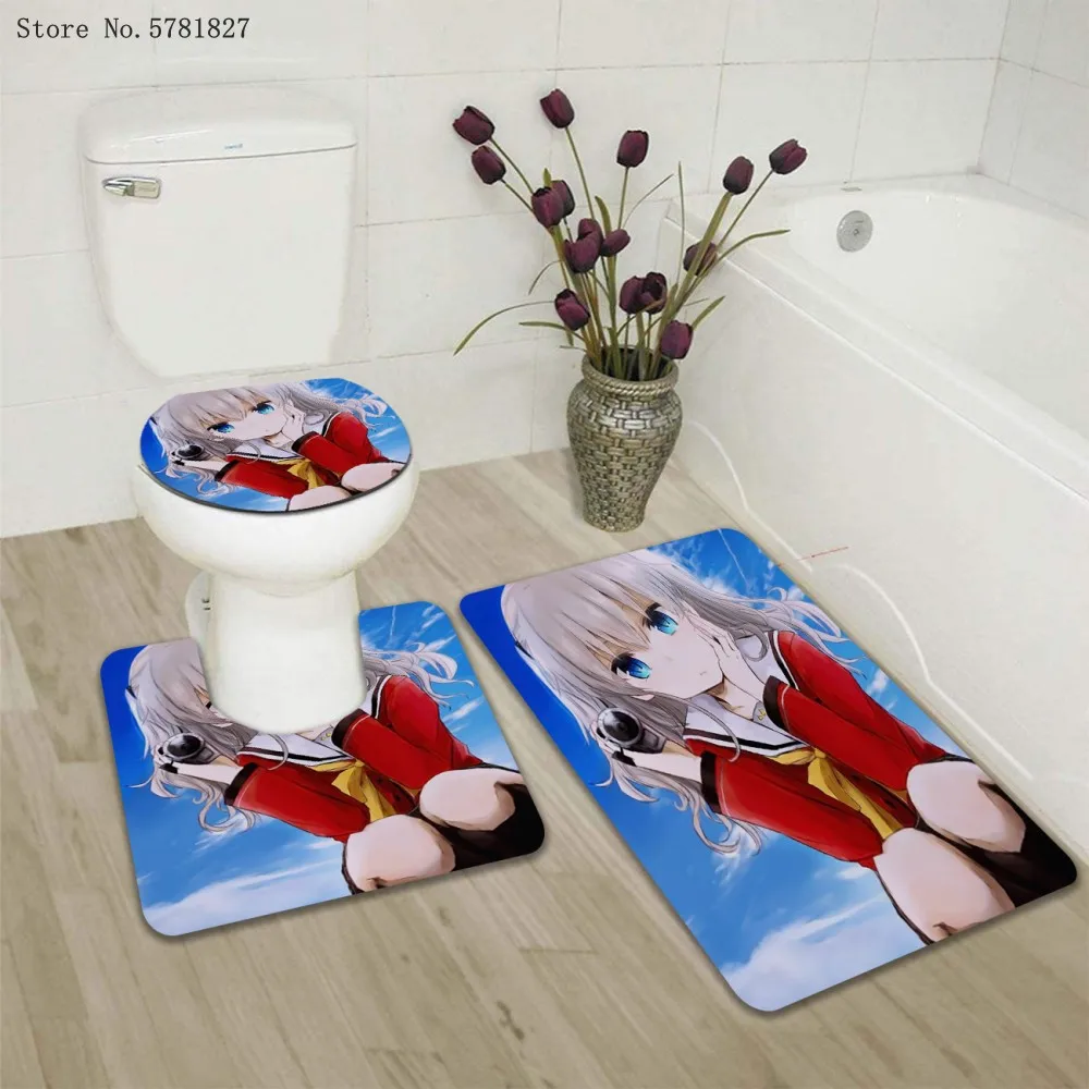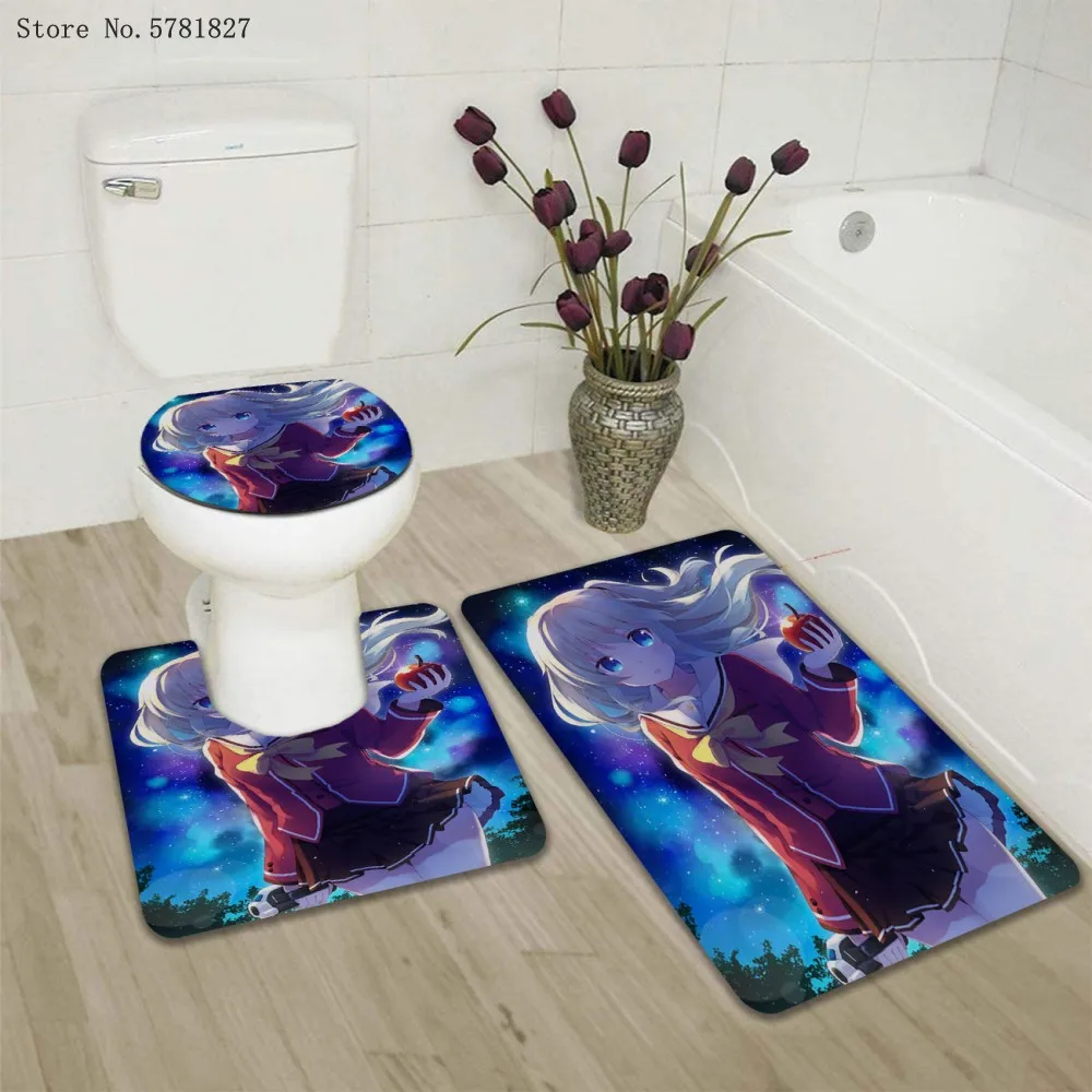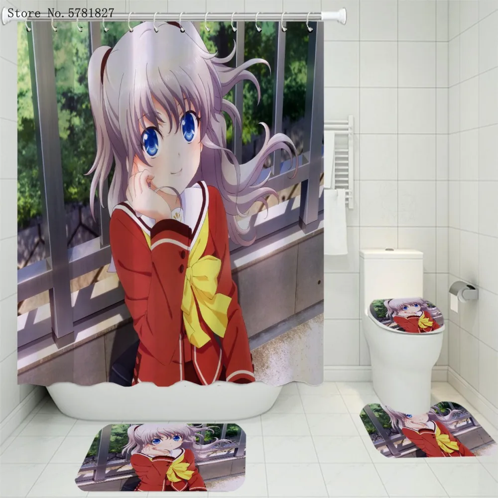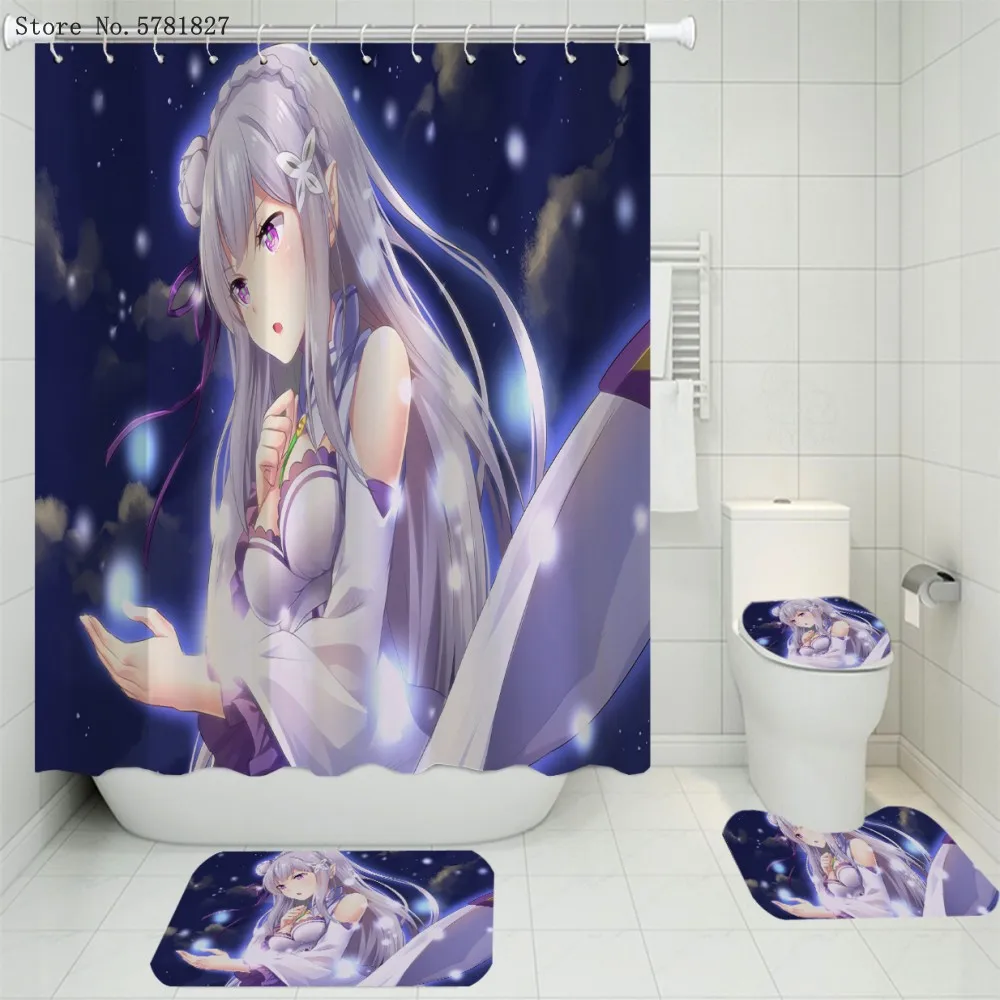 34 шт. мультяшный чехол для ковра, чехол для унитаза, набор ковриков для ванной, комплект японских занавесок для ванной в стиле аниме, Комплект штор для душа для сексуальных девушек