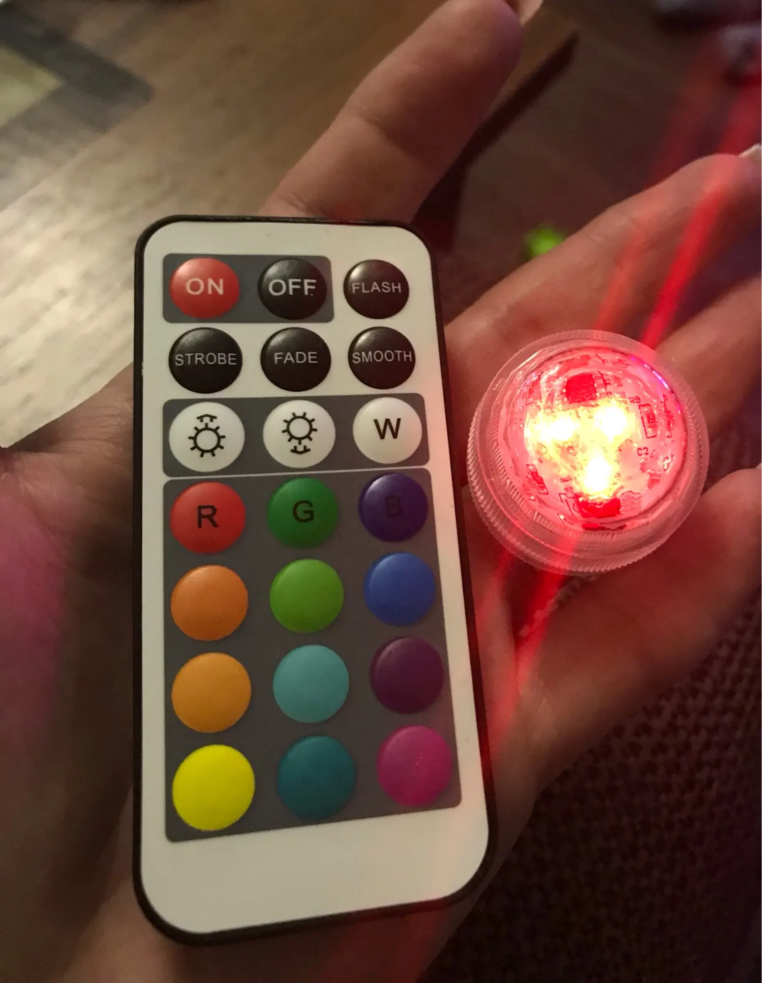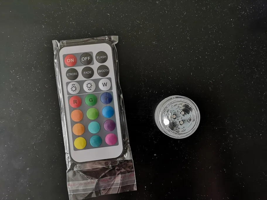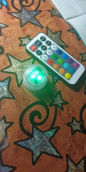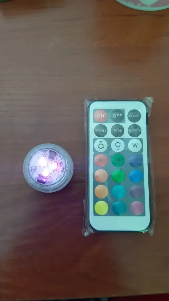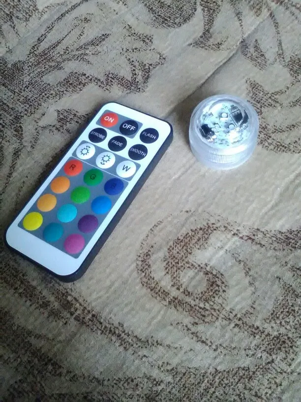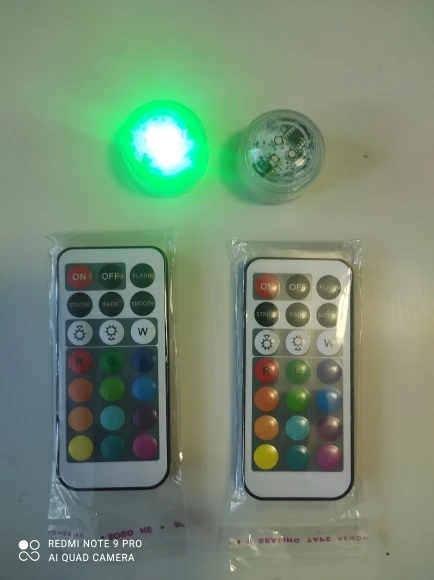 Доставка 19дней с момента отправки. Упаковано в желтый конверт с внутренней пупыркой, пульт в пакетике, батареек в комплекте нет, но в пульте есть защитная пленка в отсек батарейки. Мой светильник до конца не завинчивался, мешал сильно выступающий боковой усик плюсового контакта, пришлось его распрямить, а потом снова загнуть. На резьбе есть уплотнительная резинка, под водой думаю работать будет. В комплекте батареек нет, подошли к пульту и светильнику CR2032 -3V, хотя на обратной стороне светильника написано CR2025. Светит не очень ярко, но зато не будет сильно разряжаться батарейка и в воде свет будет распространятся по другому. Можно попробовать применить в аквариуме, или банке с водой. Режимов переключения с пульта много: вкл/выкл, регулировка яркости, просто мигание, переливы, мигание разными цветами, можно включить разные цвета, кроме чисто белого. После отключения запоминается последний режим и затем включается с него. Цена минус купон продавца(1$) = 6,85рублей.