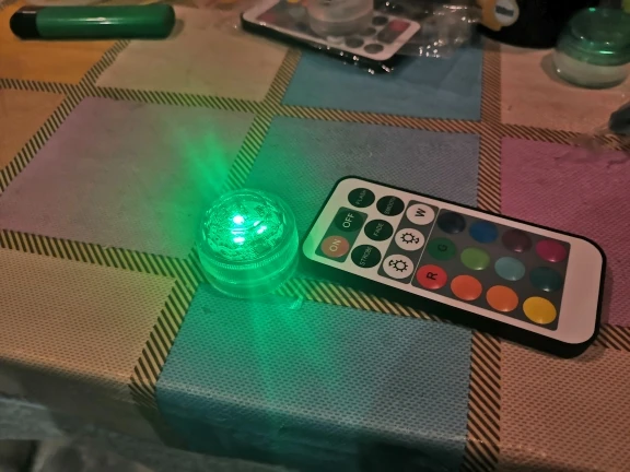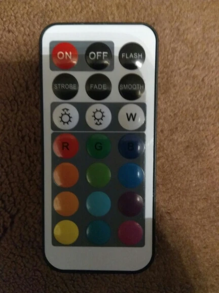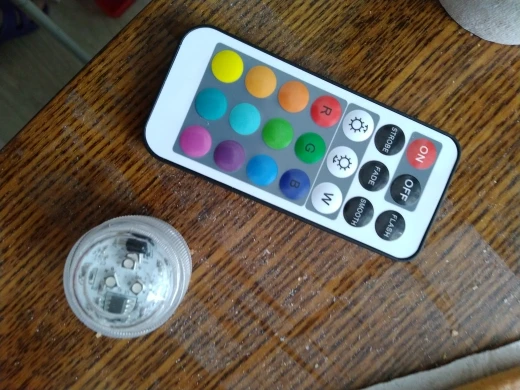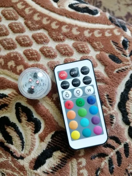 В пульте и самом диоде к сожалению нет батарейки, поэтому не проверила как горит. Но все равно спасибо, обошлась покупка дёшево, стоит своих денег