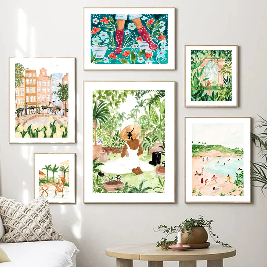 Абстрактная Модная девушка лето читать путешествия настенная живопи...
