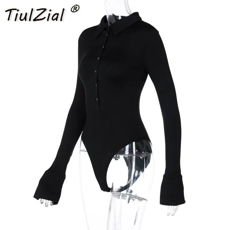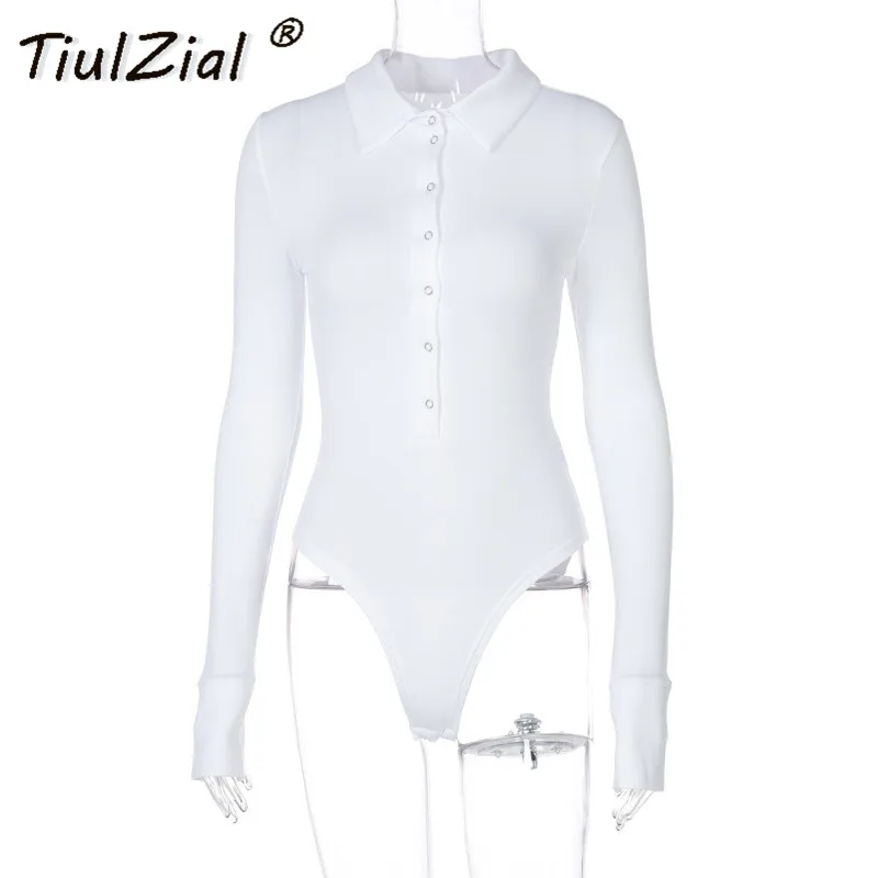 Женский Повседневный боди на пуговицах TiulZial, черный, белый, коричневый, на осень-зиму