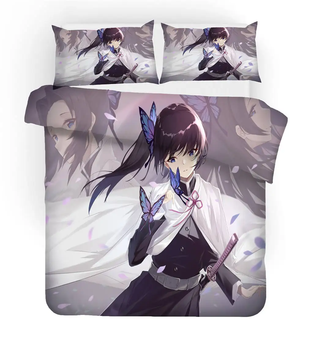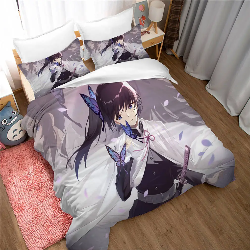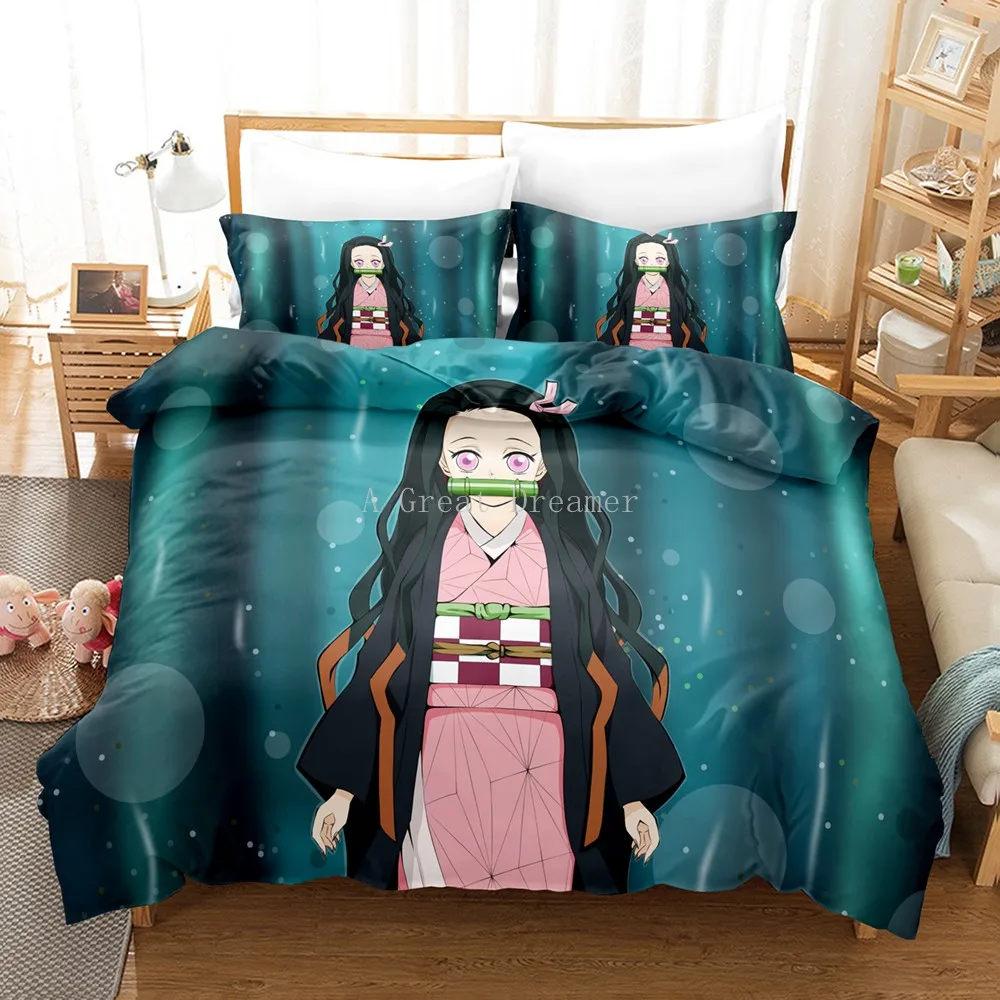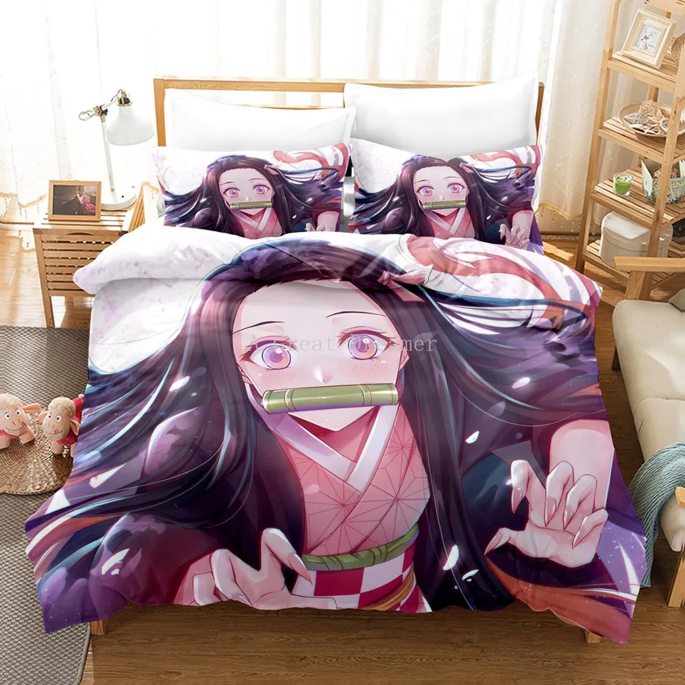 Постельное белье для девочек с 3D рисунком из аниме рассекающий демонов, декор для детской спальни, пододеяльник, привлекательный женский двойной полный комплект постельного белья большого размера