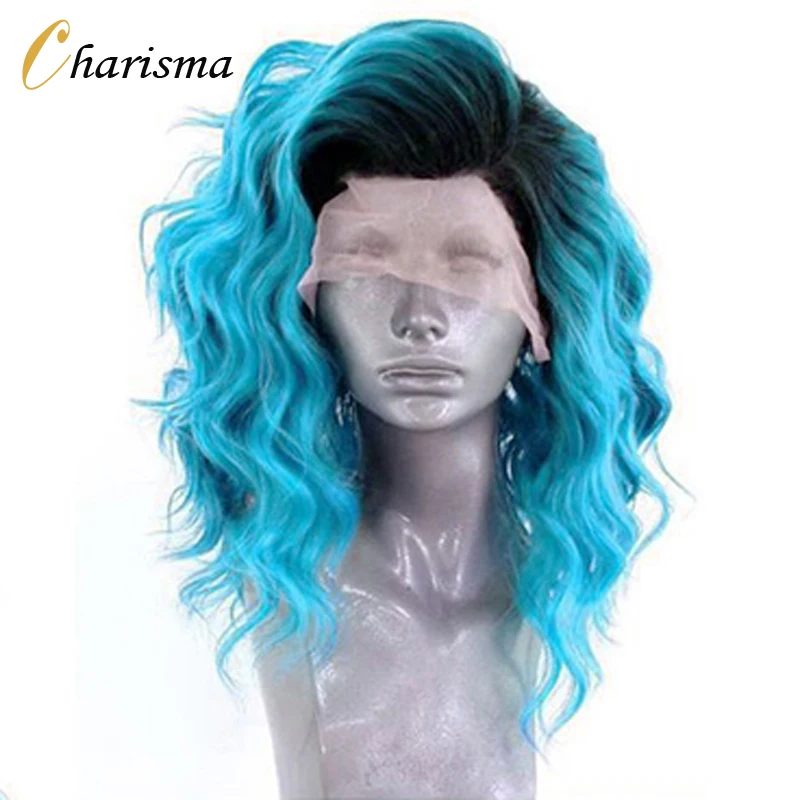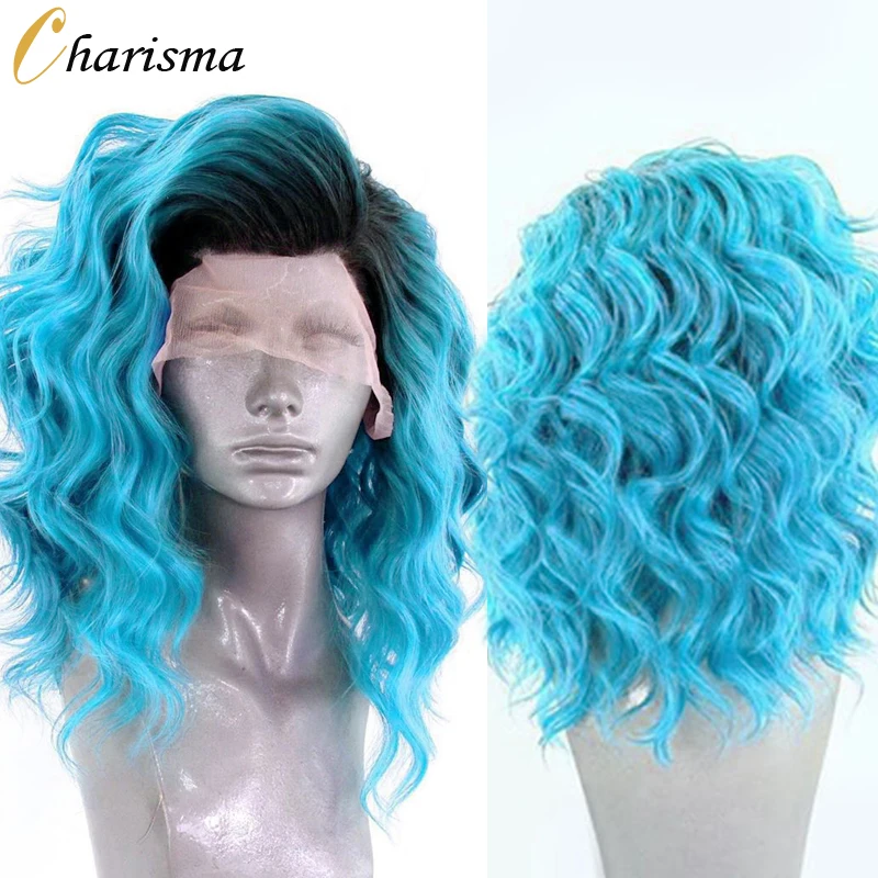 Харизма короткие парики Омбре синий синтетический кружевной передний парик черные корни короткие волнистые парики для женщин парик из высокотемпературного волокна