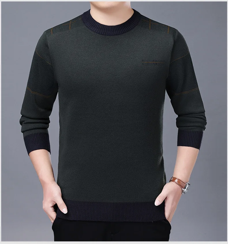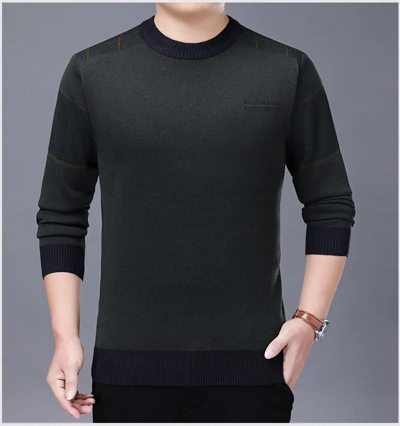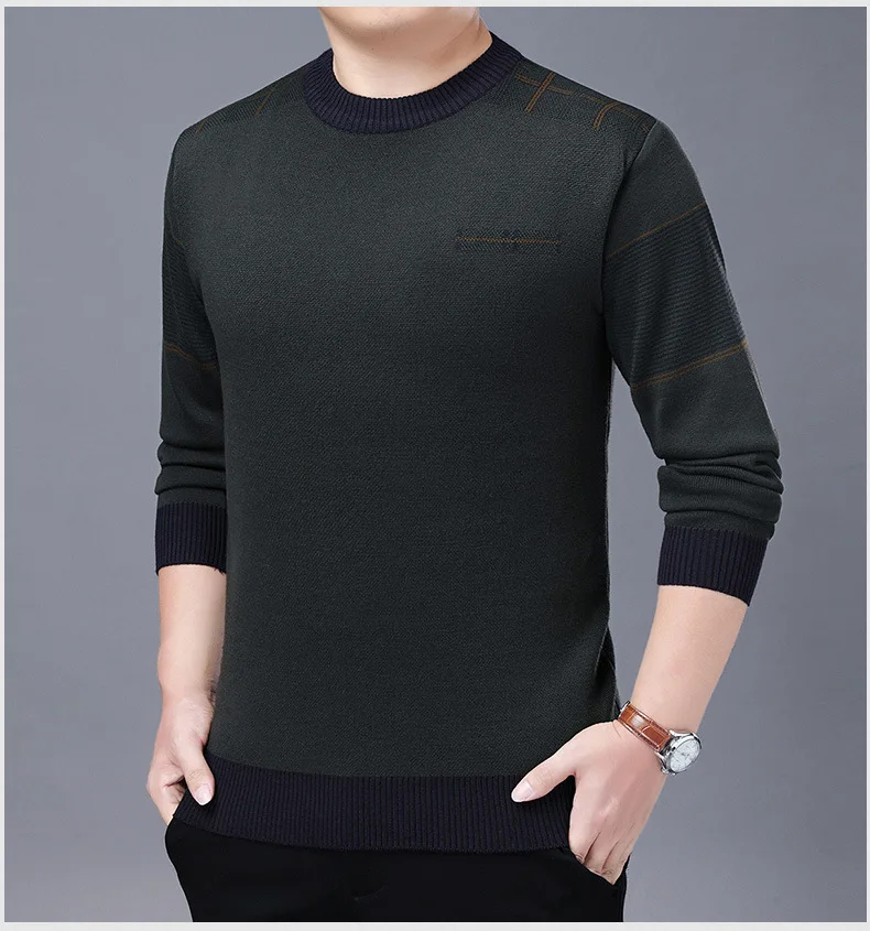 Мужской пуловер, модные свитеры, Мужская одежда, тонкий однотонный деловой повседневный мужской свитер с лацканами и круглым вырезом, сезон весна-осень 2021