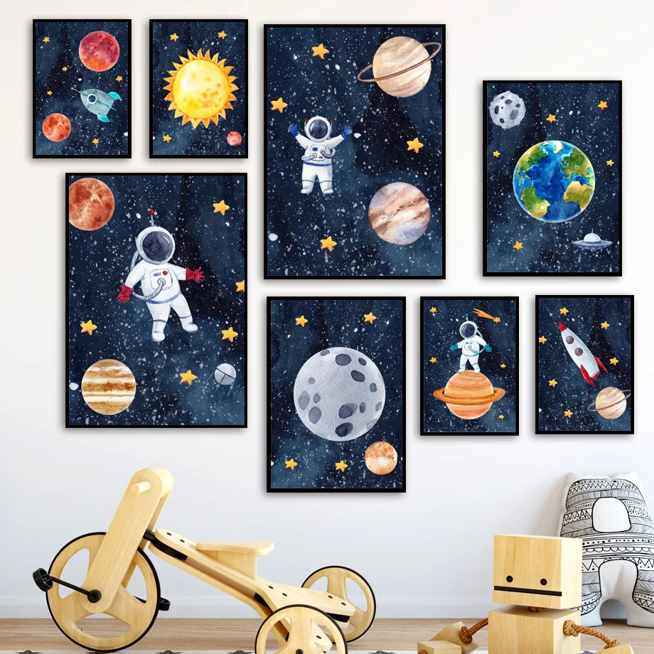Современная детская комната Милая мультяшная астронавт планета Всел...